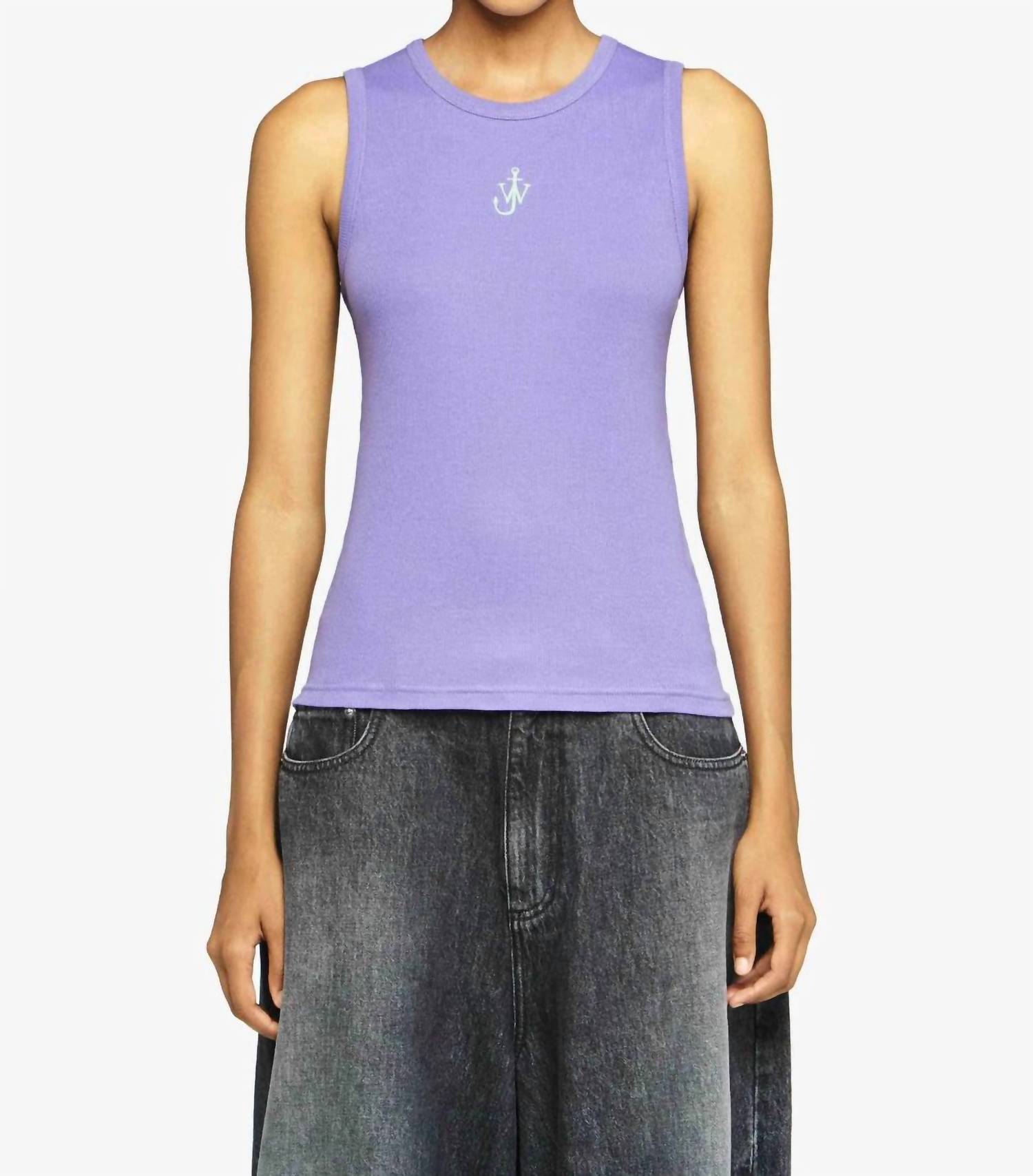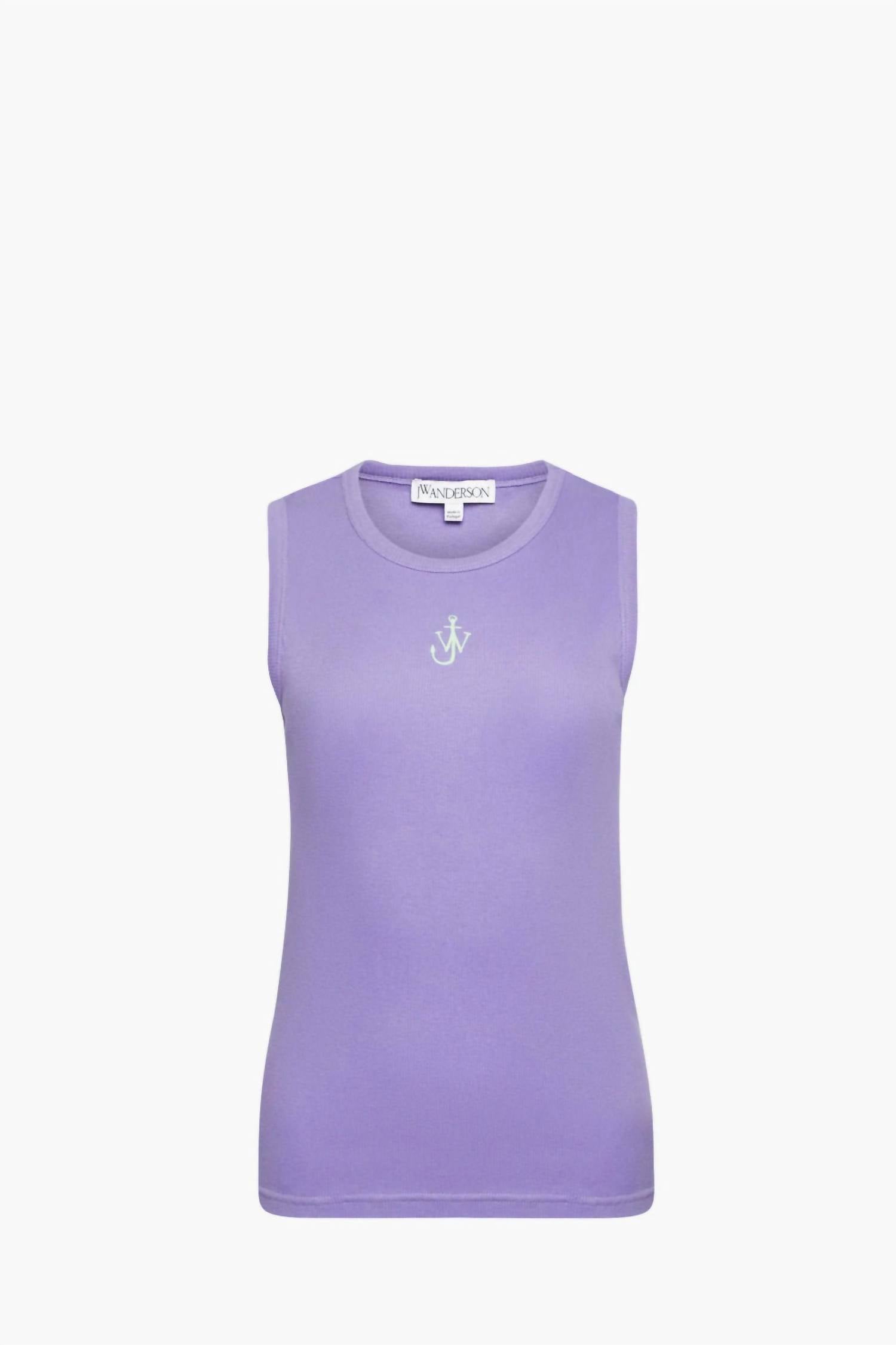 This classic tank top is perfect for layering and cute enough to wear on its own. Introducing the Anchor Embroidery Vest by JW Anderson, a refined choice in a soothing lavender hue. This sleeveless vest is crafted from 100% cotton, offering a lightweight and breathable feel perfect for summer occasions. Its minimalist, solid pattern showcases a classic crewneck design, and the pull-on closure ensures effortless wear. Ideal for a holiday party, this vest maintains an understated elegance that is true to size.