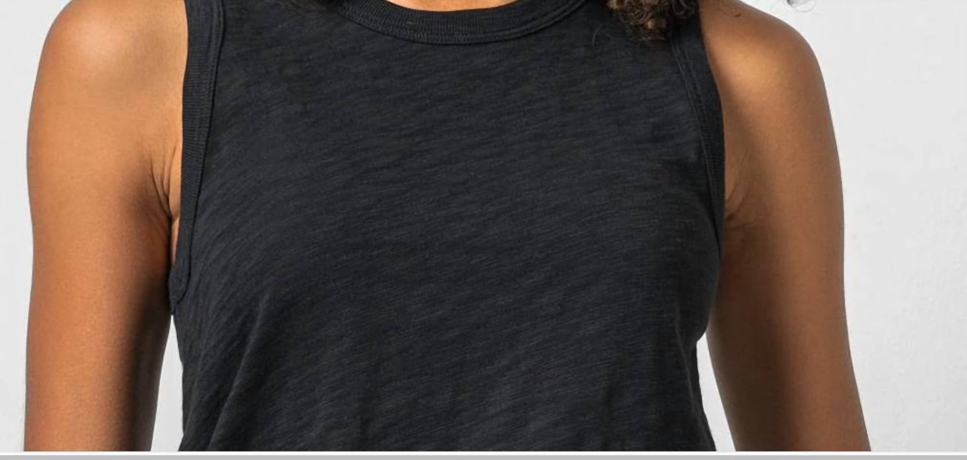 This classic tank top is perfect for layering and cute enough to wear on its own. The Lilla P Back Seam Tank Top in sleek black is a staple for athleisure and holiday gatherings. This sleeveless design, crafted from a soft knit material, offers a solid pattern with a crewneck for understated elegance. Made without pockets, it features a convenient pull-on closure for easy wear. Perfect for summer festivities or a chic Thanksgiving look.