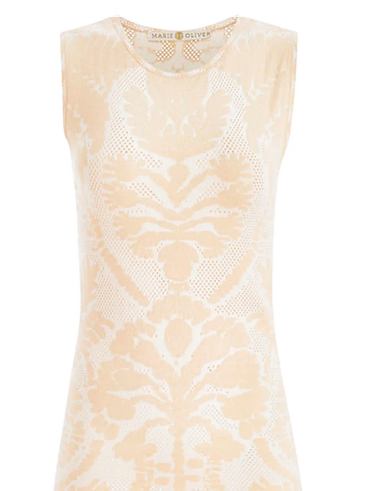 Esta regata clássica é perfeita para usar em camadas e é fofa o suficiente para ser usada sozinha. Eleve seu guarda-roupa de verão com a Regata Melba Jacquard Knit da Marie Oliver, confeccionada em malha jacquard texturizada com um marcante padrão damasco. Esta regata sem mangas, com caimento justo, apresenta uma gola redonda clássica e é confeccionada em uma luxuosa mistura de 78% viscose e 22% poliamida. Desenhada em tom opala, oferece um fecho pull-on para facilitar o vestir. Perfeita para as férias, esta peça chique não tem forro para uma sensação arejada.