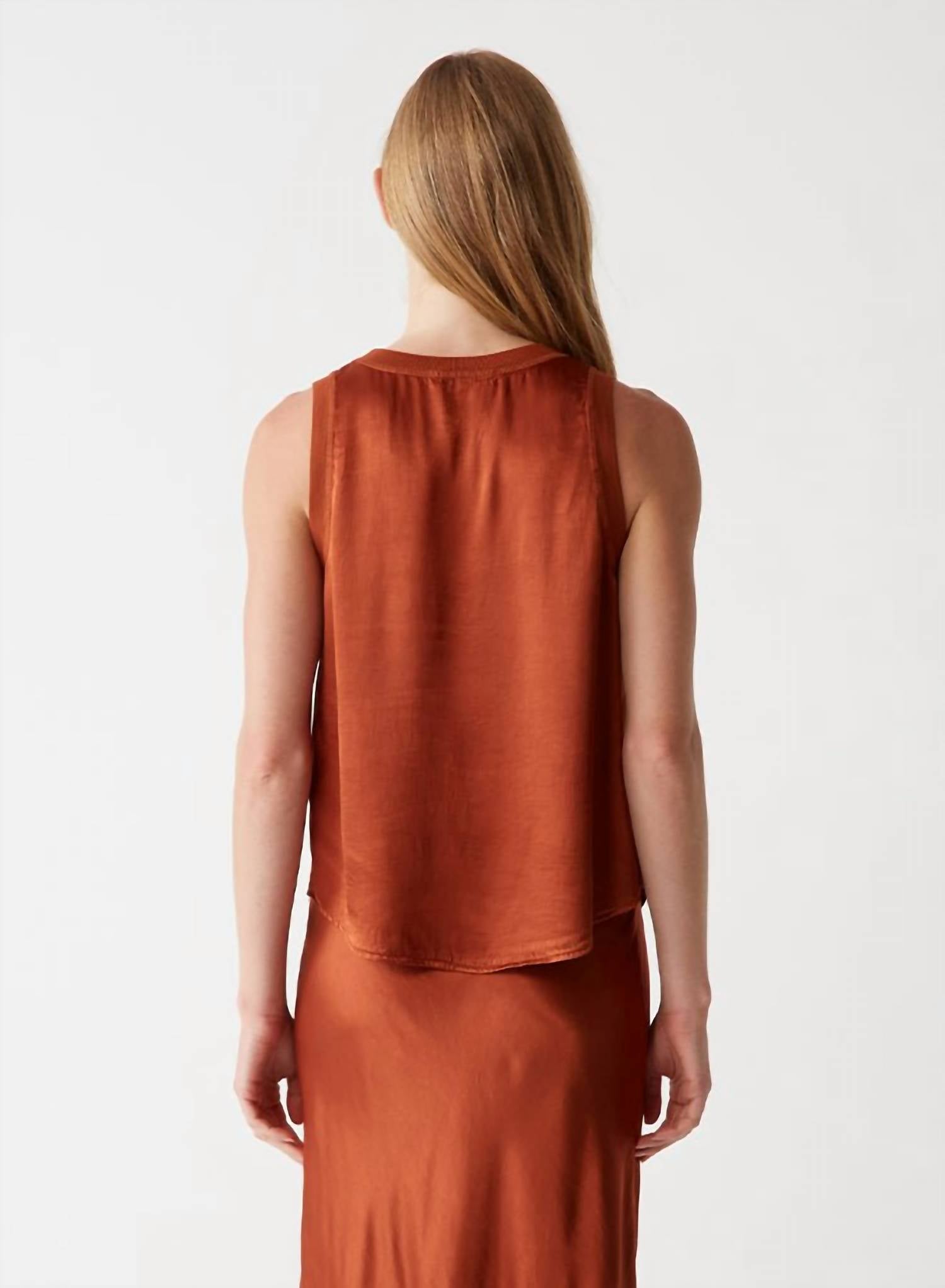 This classic tank top is perfect for layering and cute enough to wear on its own. Presenting the Shay Binding Tank by Michael Stars, a versatile sleeveless top in a striking Lava color. Crafted from a soft blend of Rayon and Viscose, this tank features a crewneck with ribbed details and a flattering curved hem. Made in LA with a solid pattern, it is designed for both day and night transitions and embodies a minimalist trend perfect for spring occasions. Closure: Pull-on style for ease. Care instructions include machine wash and tumble dry.