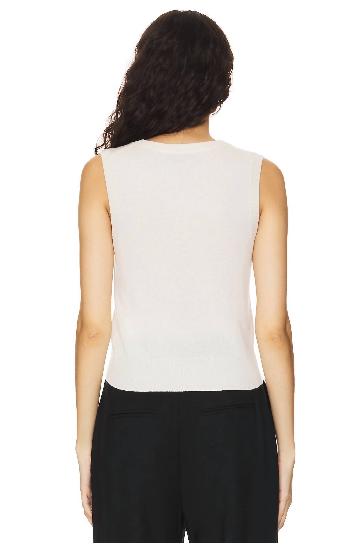 A regata February é uma adição elegante a qualquer guarda-roupa com sua luxuosa composição em cashmere. Esta regata sem mangas apresenta decote em V, totalmente modelado ao longo das cavas, pescoço e ombros, exibindo um detalhe exclusivo em tricô trançado nas costas. Desenhada com um corte slim, combina conforto e estilo sem esforço. 100% cashmere.