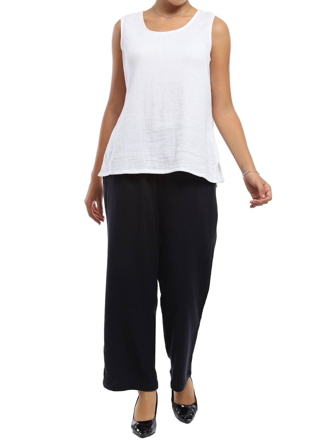 The Shawn Tank by Parsley & Sage is a minimalist staple perfect for spring occasions like Thanksgiving dinner parties. This sleeveless tank, made from 100% cotton, features a classic scoop neckline for a comfortable, breezy fit. The pull-on closure makes it an easy choice for layering or wearing solo. Embrace effortless elegance with this solid white tank top.