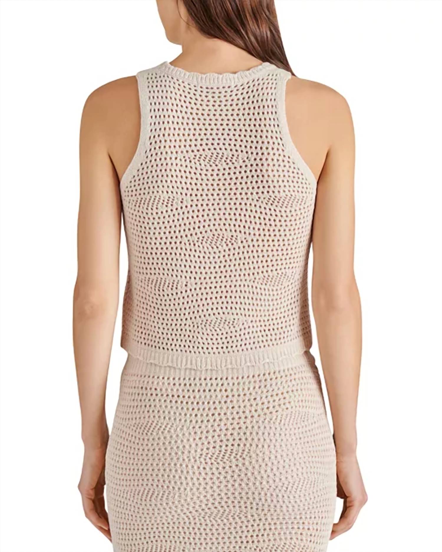 Apresentamos a Regata Hannah Sweater da STEVE MADDEN, um item essencial boho-chic para o seu guarda-roupa de verão em Misty Rose. Este modelo sem mangas apresenta costuras abertas e arejadas com ombros vazados, perfeito para os dias quentes de férias. Composição: 100% Viscose. Fecho: estilo pull-on para facilitar o uso. Cuidados: Lavar à mão e secar na horizontal. Confeccionada em tecido de crochê leve para um visual texturizado.
