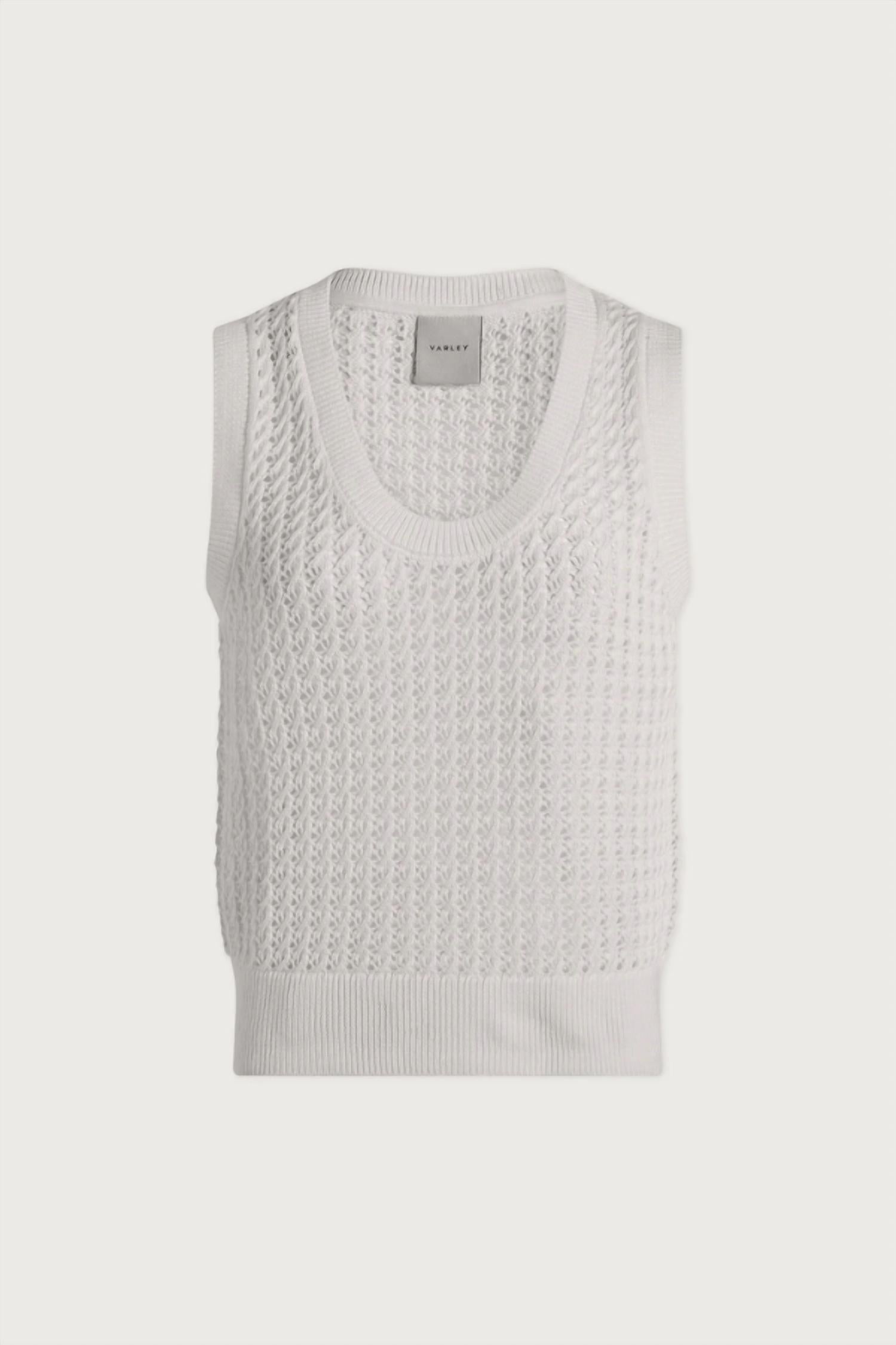 The perfect tank top for those warmer weather seasons. Introducing the Ferns Open Knit Tank by VARLEY, a chic addition to your summer wardrobe in Snow White. This sleeveless tank combines style and comfort with its scoopneck design and is crafted from 100% cotton for a breathable, lightweight feel. Designed with a solid pattern and a modern pull-on closure, it's your go-to piece for both casual outings and activewear needs. Machine wash cool, do not bleach, avoid tumble drying, iron on low, and dry flat—reshape while damp for best results.