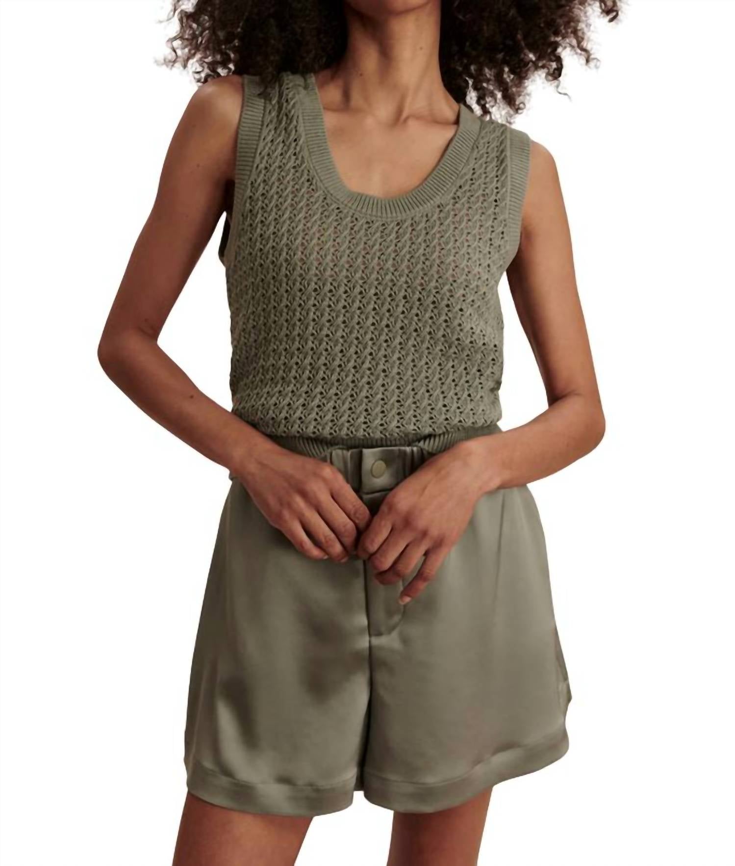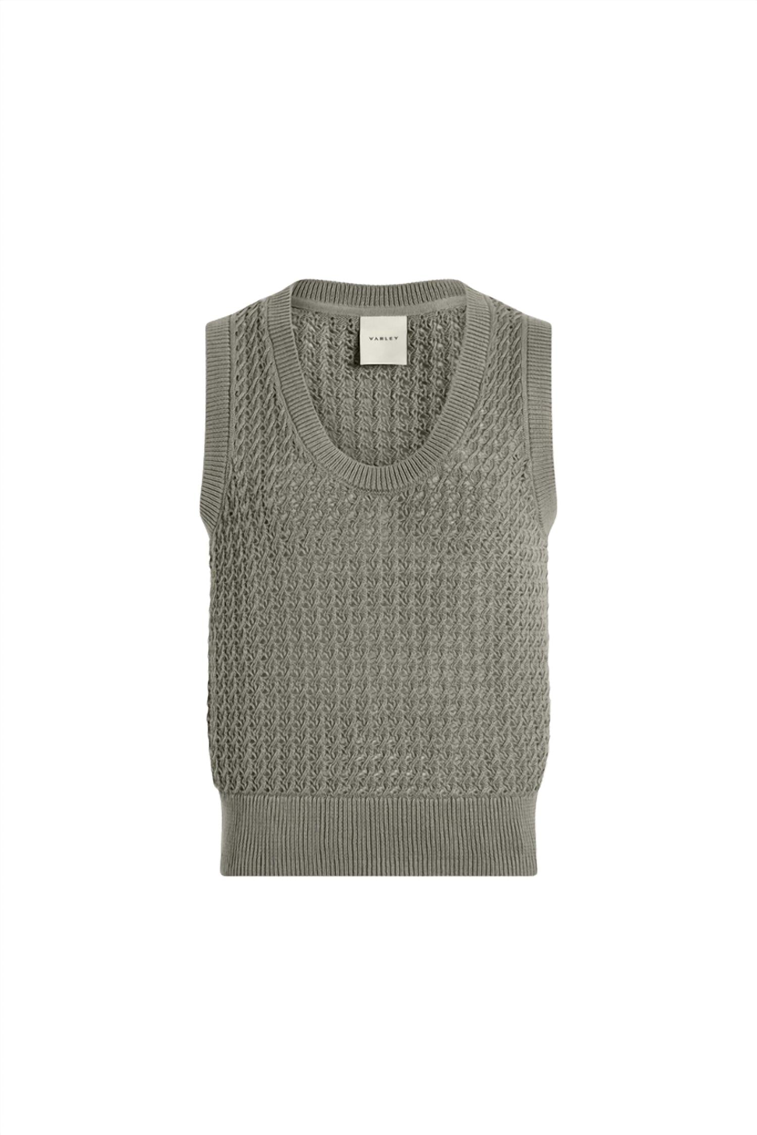 Elevate your summer style with the Ferns Open Knit Tank Top by VARLEY, perfect for minimalist fashion lovers. This women's sleeveless scoopneck tank combines 100% cotton material with a textured finish in a chic shadow shade. Designed for holiday parties or casual outings, it features a convenient pull-on closure. For easy care, machine wash cool, iron on low, dry flat, and avoid bleach or tumble drying.
