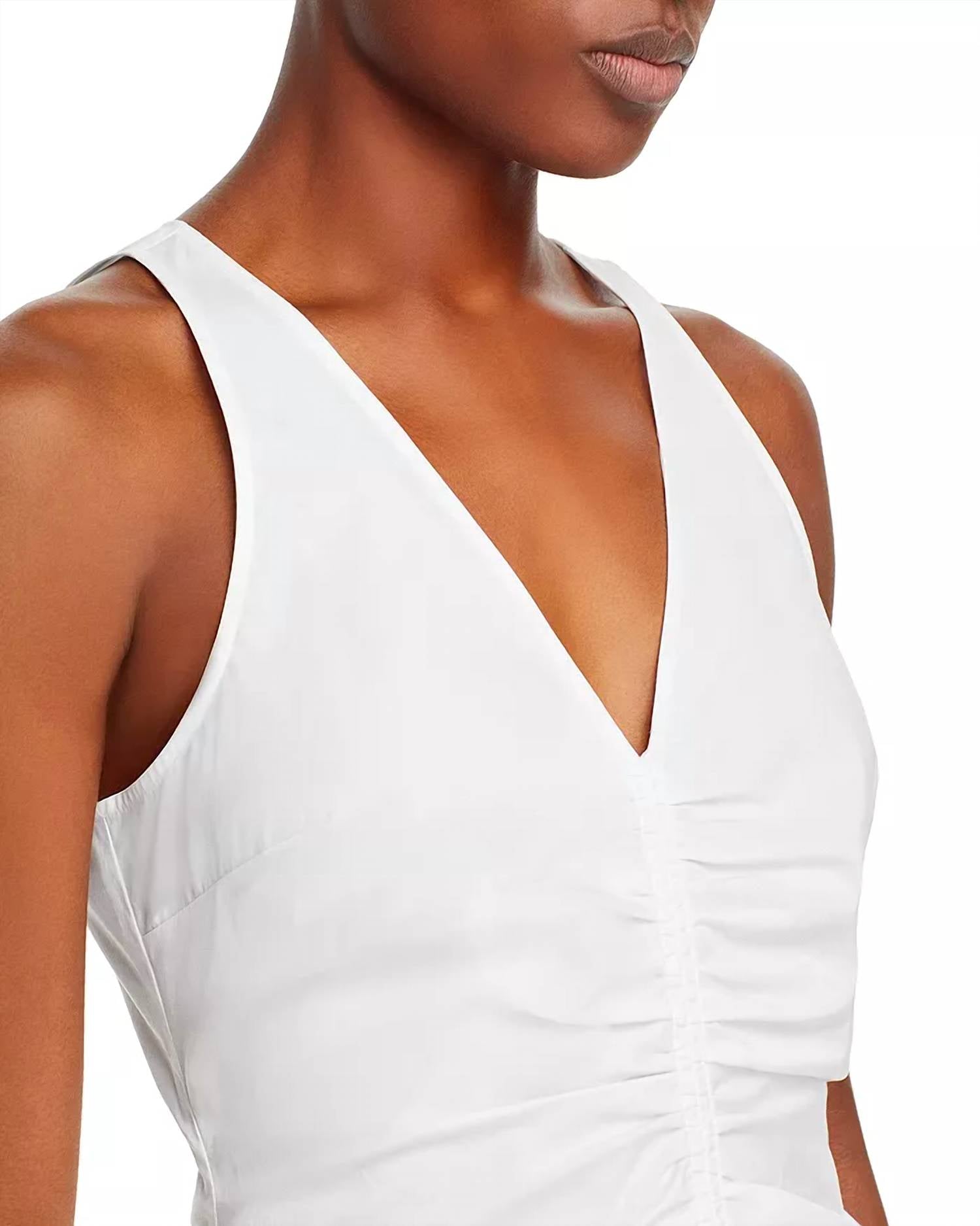 A regata perfeita para as estações mais quentes. Descubra a blusa sem mangas Oya da Veronica Beard, uma peça essencial para o seu guarda-roupa de viagem de primavera. Confeccionada em uma mistura macia de algodão, esta regata estilosa apresenta decote em V e franzido central frontal, conferindo um toque fashion dos anos 90. Composição: 97% algodão, 3% elastano. Fecho: estilo pull-on. Cuidados: Lavagem a seco. Desenhada para ficar no quadril, esta peça branca lisa tem um caimento fiel ao corpo. A modelo veste tamanho pequeno (altura 1,78 m, busto 85 cm, cintura 60 cm, quadril 87 cm). Importada e confeccionada com atenção aos detalhes, é ideal para looks versáteis.