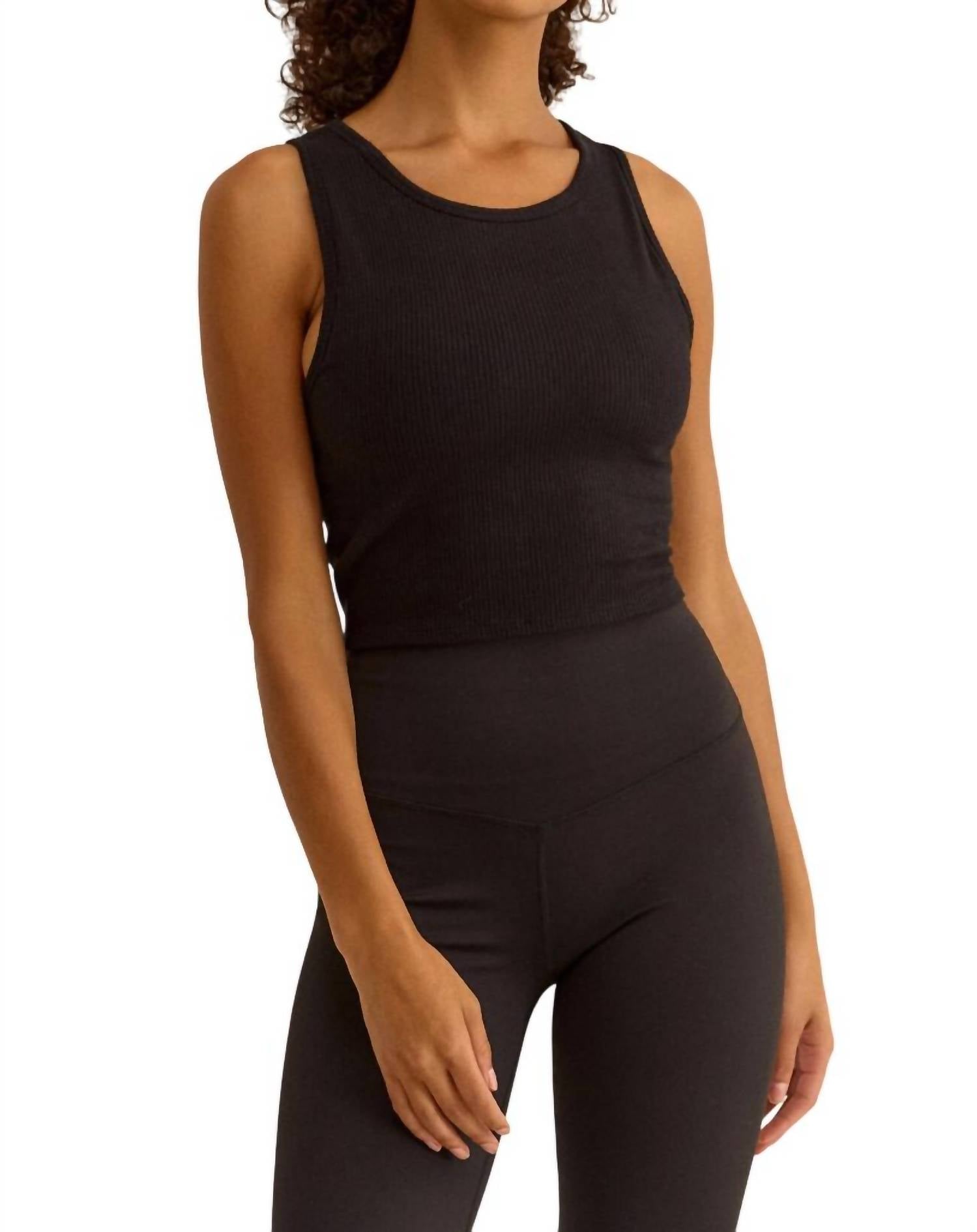 Caimento, tecido e funcionalidade. Esta regata preenche todos os requisitos. A regata Count Me In Rib apresenta gola alta e modelagem justa com suporte médio. Inclui sutiã com bojo e bojos removíveis para maior praticidade. O comprimento a partir do ombro é de 41 cm e é confeccionada em tecido canelado estruturado composto por 95% rayon e 5% elastano.