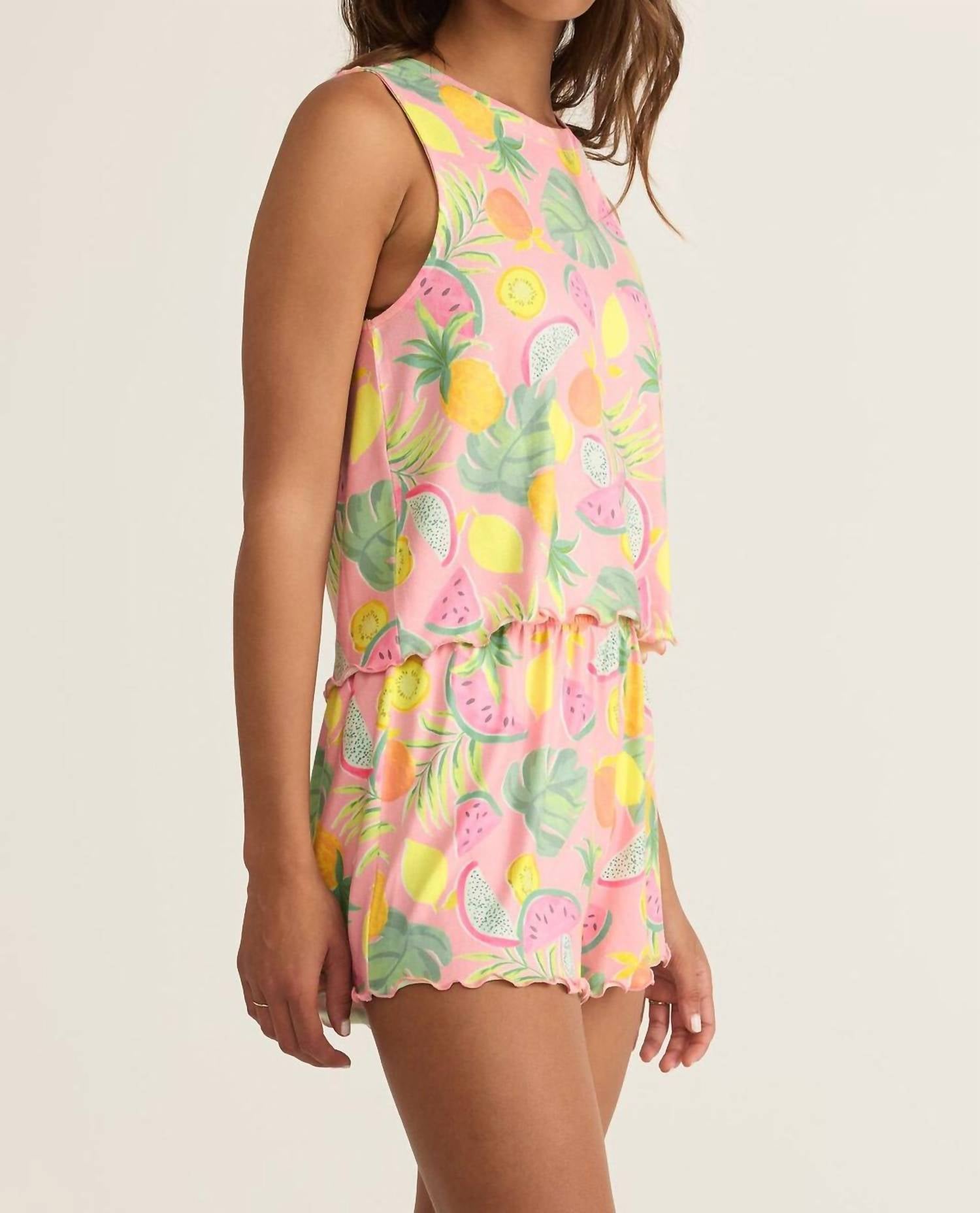 Apresentamos a regata Z Supply Sloane Fruit na vibrante cor rosa peônia, um complemento perfeito para o seu guarda-roupa de verão. Esta regata sem mangas é confeccionada em jersey sedoso com composição de 95% poliéster e 5% elastano, oferecendo um caimento relaxado e uma estampa divertida de frutas tropicais. Com comprimento do ombro variando de 47,5 cm a 50,8 cm, ela combina perfeitamente com shorts combinando para um look de férias descontraído. O fecho é pull-on, tornando-o prático e confortável para uma ocasião descontraída. A modelo tem 1,75 m de altura, 81 cm de busto, 61 cm de cintura e 88 cm de quadril, e veste tamanho P.