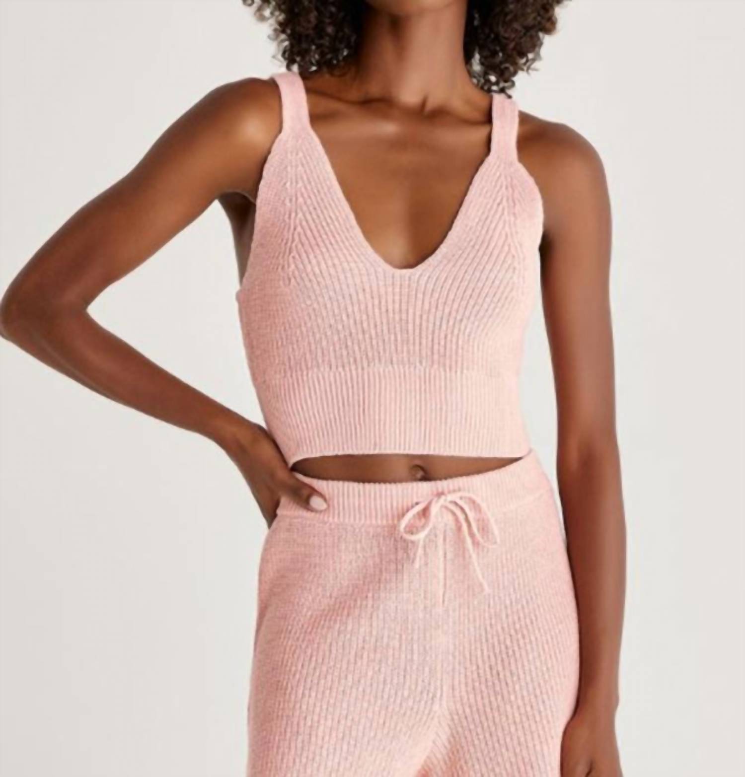 Caimento, tecido e funcionalidade. Esta regata preenche todos os requisitos. 60% algodão, 40% acrílico. Caimento afunilado. Feito de um tecido de malha para suéter em tons pastéis de primavera, o suéter de verão em malha justa é um bralette com uma faixa inferior larga para mantê-lo no lugar e oferecer suporte moderado. Lavar à mão com água fria. A modelo está vestindo tamanho P [Altura: 1,75 m, Busto: 79 cm, Cintura: 63 cm, Quadril: 89 cm]