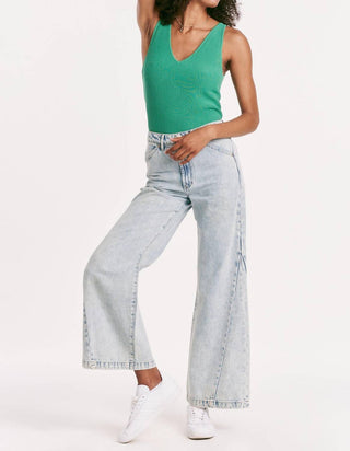 Por Together - Suéter de malha com listras de acrílico e nylon sem mangas