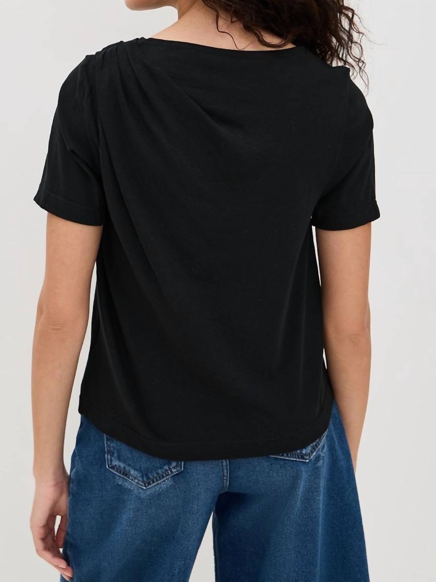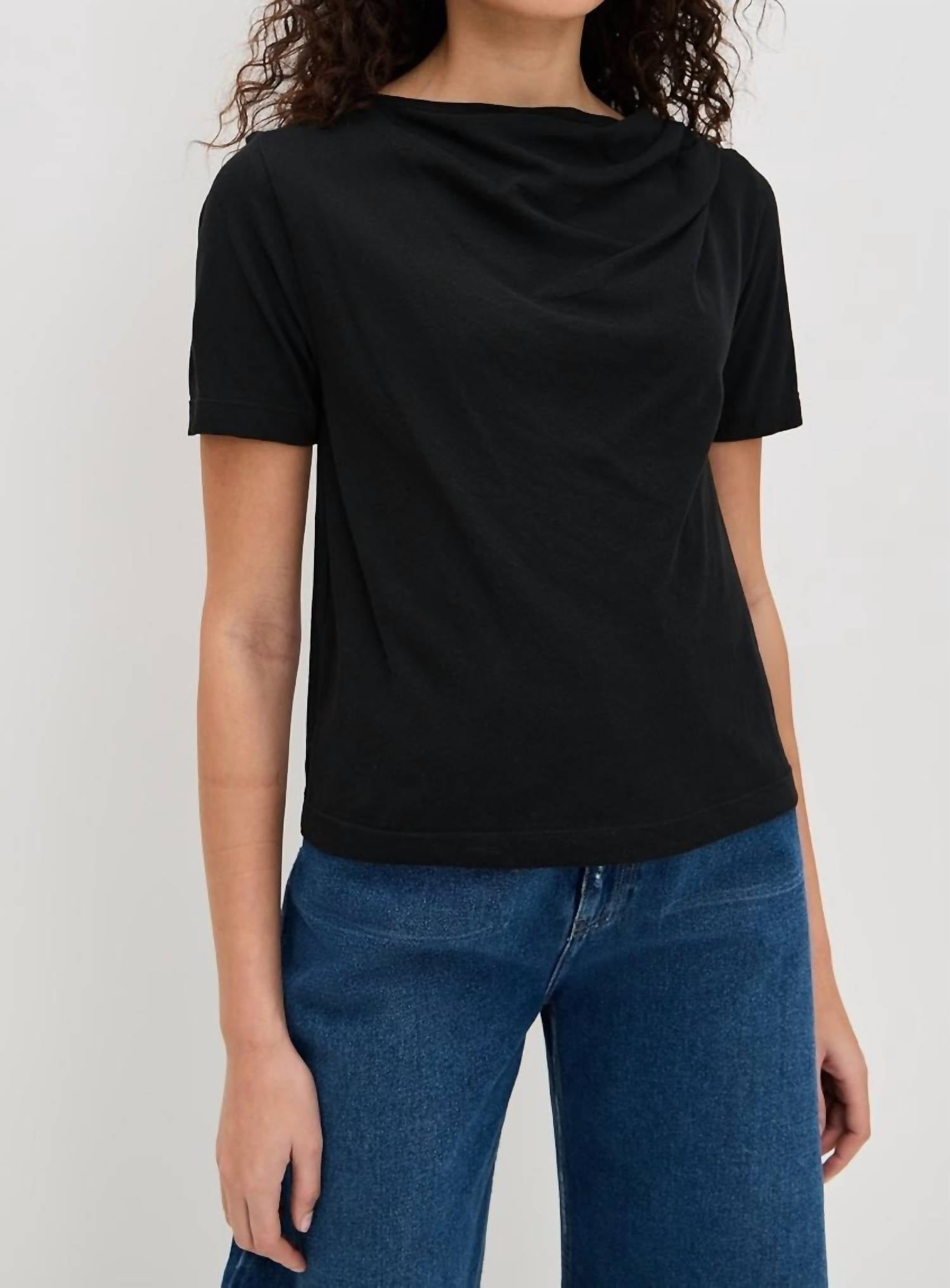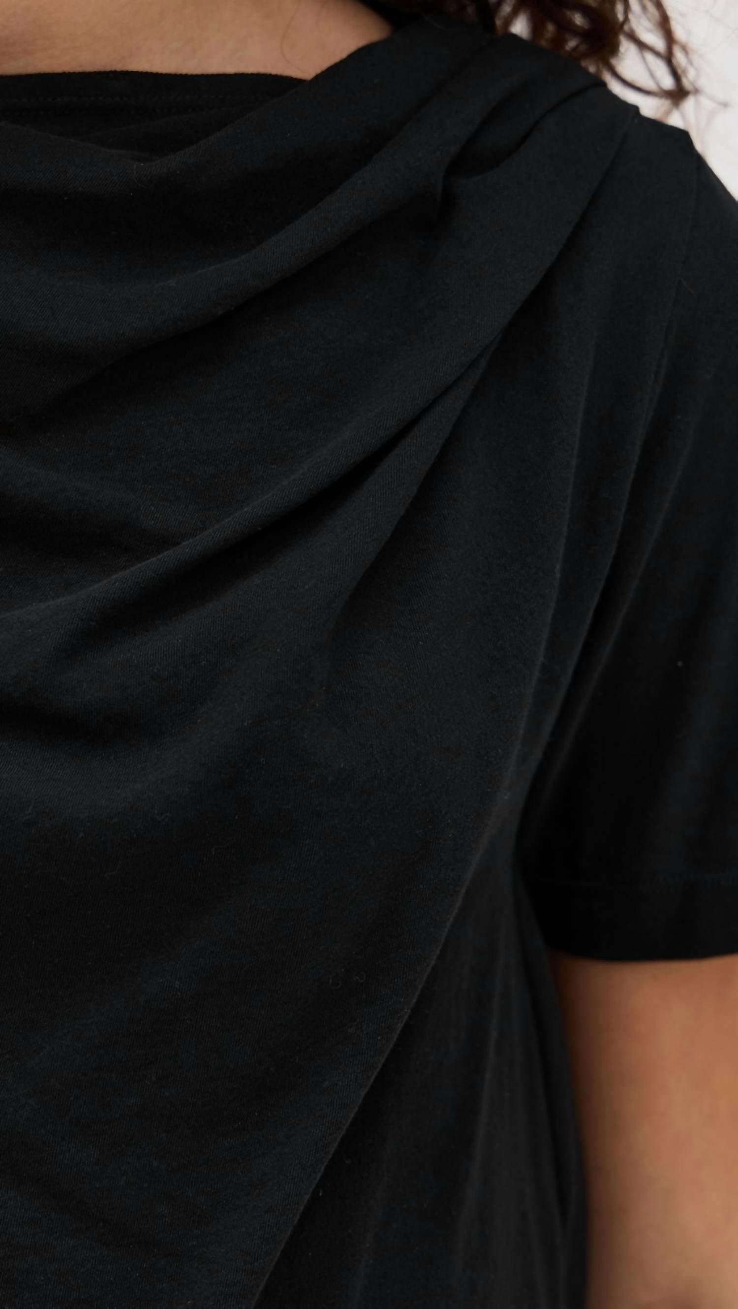 A camiseta de manga curta que você vai querer em todas as cores. Apresentamos o Lee Top da ALC, uma mistura perfeita de elegância e conforto em uma cor preta elegante. Esta camiseta texturizada apresenta mangas curtas e uma sofisticada gola canoa, confeccionada em 100% algodão para uma silhueta drapeada. Importada da China, oferece um fecho de puxar para vestir sem esforço. Somente lavagem a seco. O comprimento da peça é de 55 cm.