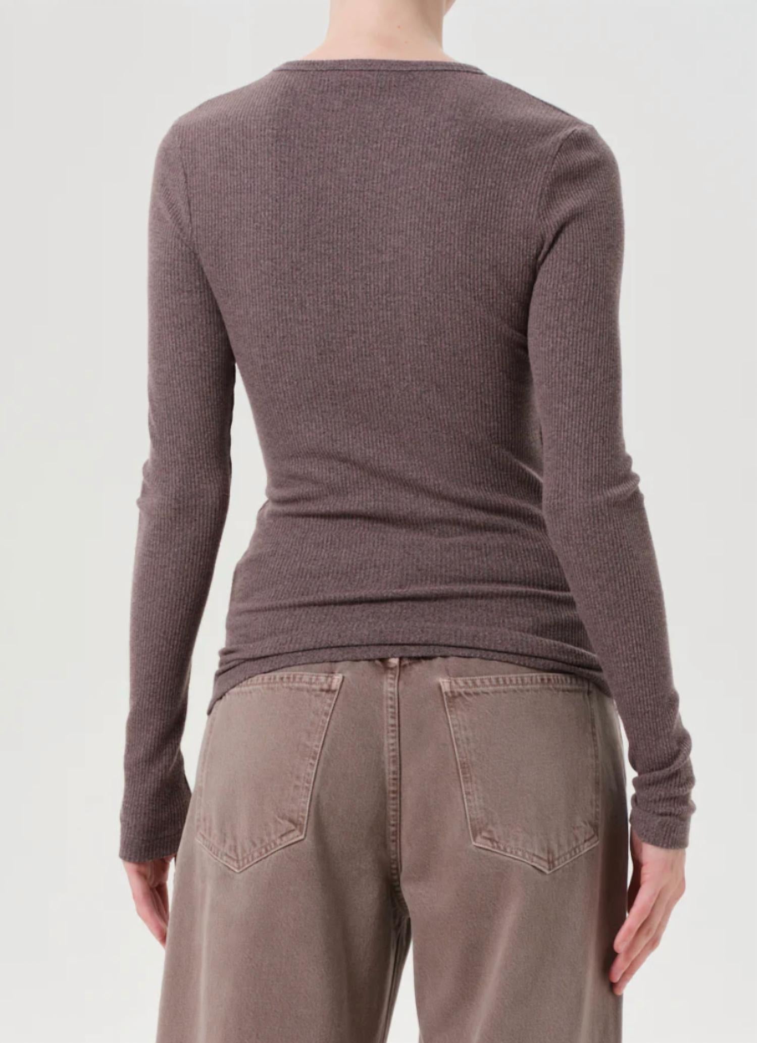A long sleeve top you can wear with denim, skirts, well... just about anything! Meet the Delphi Slim Tee by AGOLDE, perfect for your fall streetwear wardrobe. This women's long sleeve crewneck is crafted from a midweight chunky rib that hugs the body, providing a flattering, fitted silhouette in a solid ceramic hue. Designed with a pull-on style, it's perfect for layering or wearing solo during your travels. Whether it's for Thanksgiving or just a day out, this tee is an essential for comfort and style.