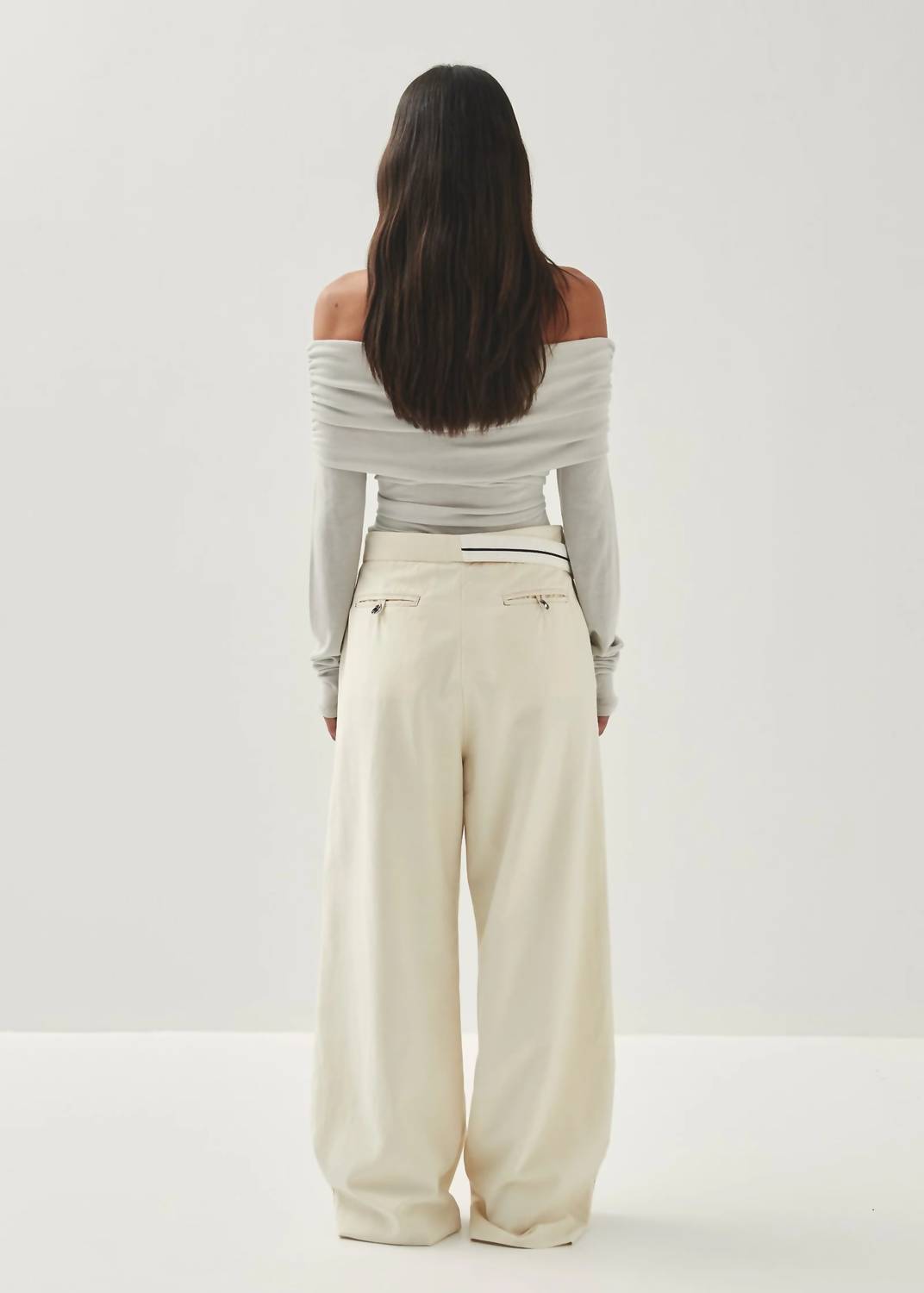 A versatile blouse that works from desk to dinner! Introducing the Emica Off-the-shoulder Top by ALOHAS, a sophisticated piece in a timeless grey hue. This long-sleeve top features a graceful off-the-shoulder neckline with a double layer draping over the chest and side ruching for a flattering silhouette. Crafted from 100% Tencel Lenzing, this top is designed in Barcelona and made in Portugal, ensuring quality and elegance. Closure: Pull on. Model is 171 cm tall and wears a size S, which fits true to size.