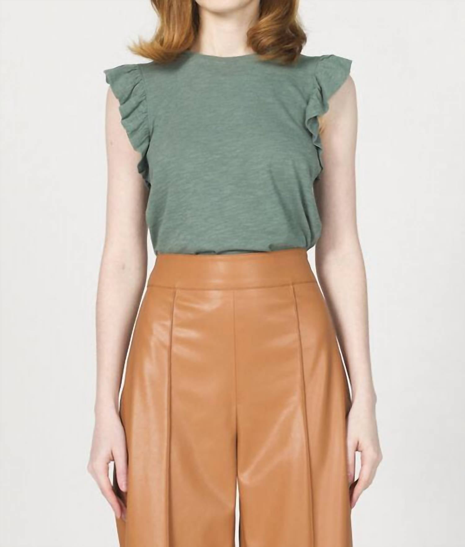 A versatile blouse that works from desk to dinner! Discover the North Top by Another Love, an exciting twist on a classic tank in a delightful slate green shade. This women’s blouse features cap sleeves with charming ruffle trim and a crewneck neckline for added elegance. The cotton blend comprises 60% Cotton and 40% Rayon, making it ideal for girlish comfort and summer seasons. Closure type: Pull-on. Care instructions: Machine wash and tumble dry.