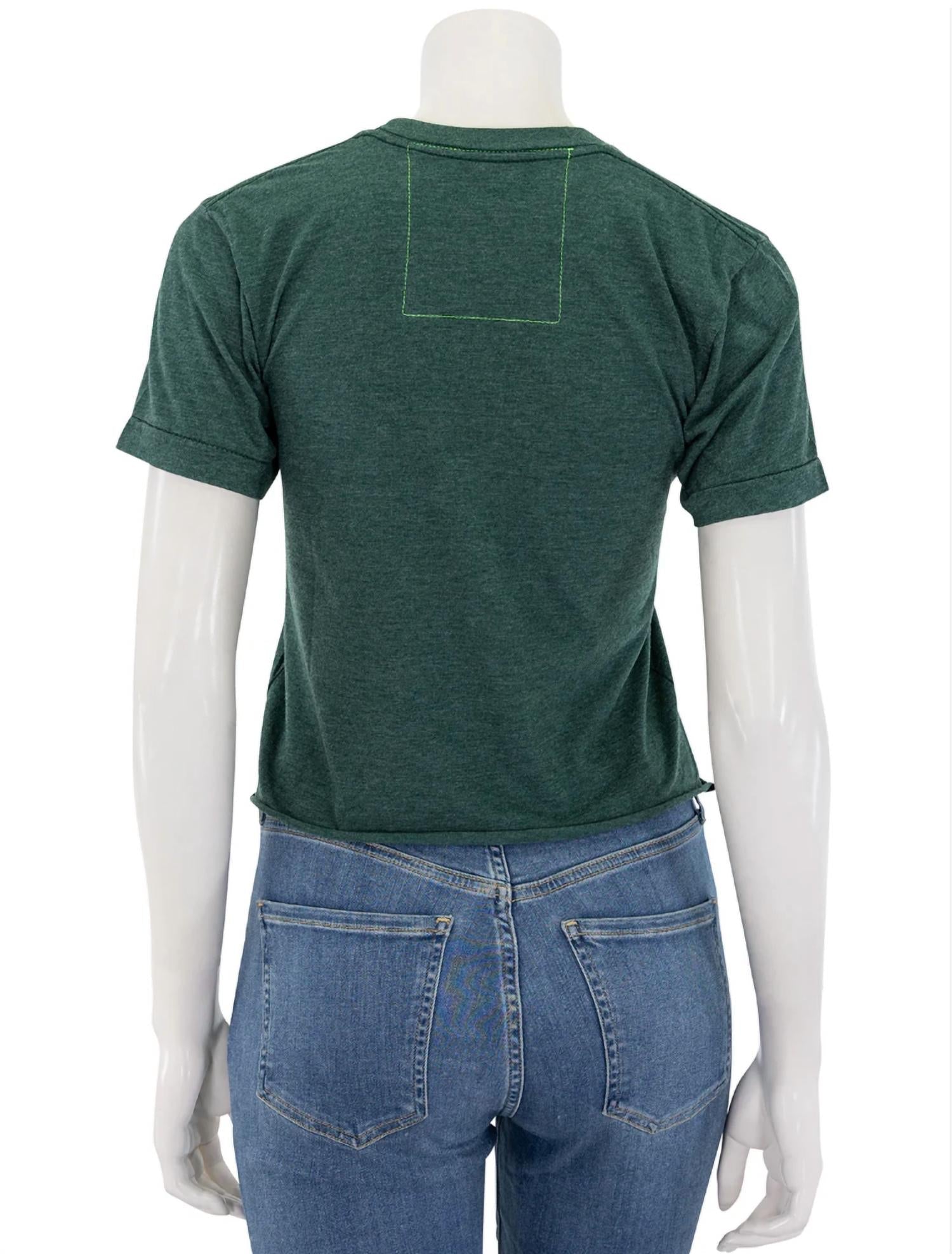 This classic, short sleeve tee will be your go-to staple this season and beyond. Embrace laid-back style with the Logo Boyfriend Tee by Aviator Nation, a must-have in versatile forest green. This women's tee features a short sleeve design with a classic crewneck and eye-catching graphic pattern. Crafted from soft cotton, it offers easy wear with a pull-on closure. For your convenience, it is machine washable and suitable for tumble drying.