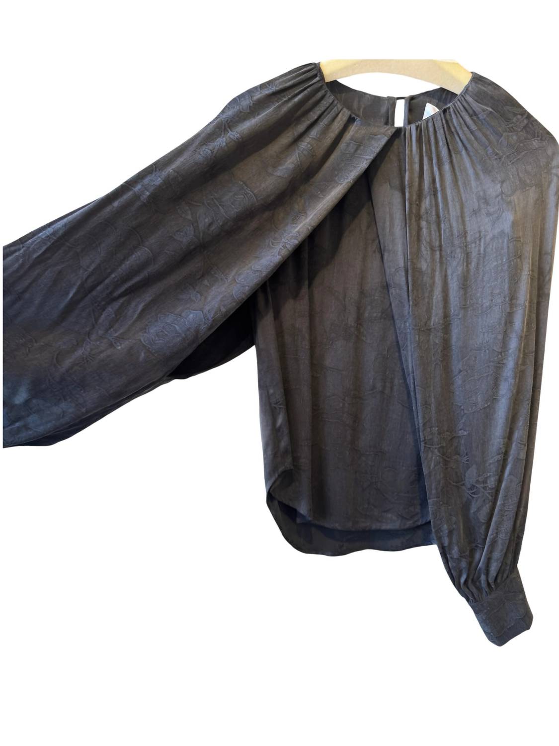 Pair this with your favorite jeans and slides for your next girls night out. Embrace understated elegance with the Drape Blouse by Beatrice .b, crafted for discerning women seeking quiet luxury. This solid obsidian blouse features long sleeves and a refined crewneck, perfect for any holiday party or Mother’s Day celebration. Closure: Button closure. With its chic design, it's a stylish addition to your spring wardrobe.