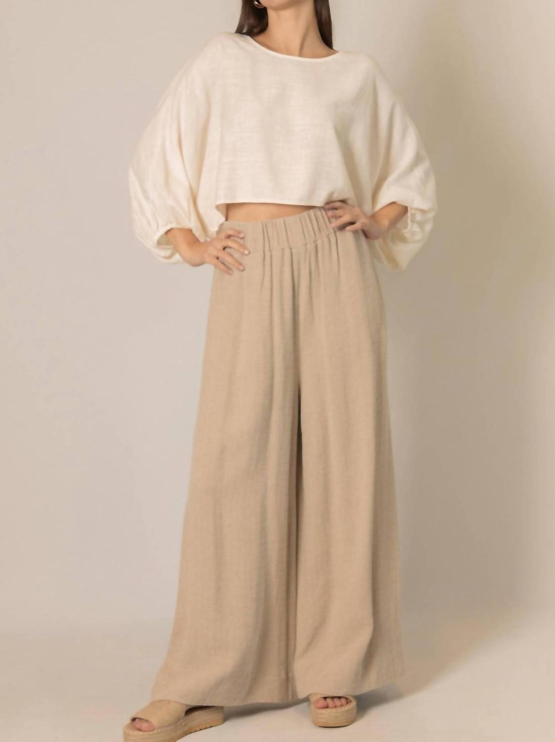 Pair this crop top with your favorite high-waisted jeans or maxi skirt. Presenting the Cropped Linen Top by Before You Collection, an minimalist essential in a sophisticated ivory hue. This top boasts long sleeves with puff detailing and a crewneck, perfectly combining casual elegance for a holiday party ensemble. Crafted from natural linen, it offers breathability with a chic cropped silhouette ideal for fall layering. Featuring a convenient pull-on closure, this piece is a must-have addition to your holiday wardrobe.