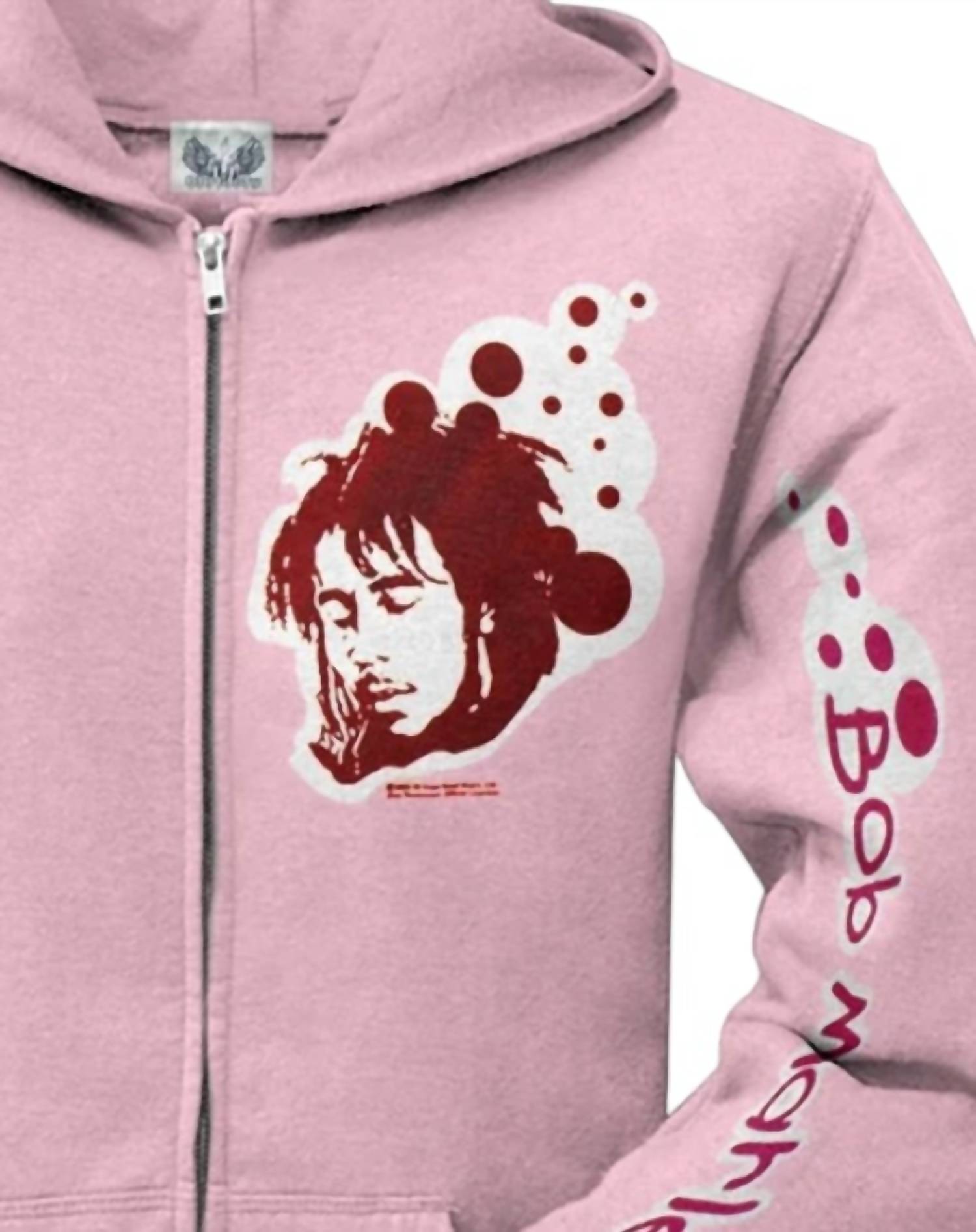 Cozy fabric, impeccable design - Meet the sweatshirt that you'll never want to take off. Embrace your inner music icon with the Women's Deep Juniors Zip Hoodie by Bob Marley, featuring a vibrant pink hue and a graphic pattern for a bold streetwear look. Designed with long sleeves and a cozy hooded neckline, this hoodie offers both style and comfort. Crafted for music festival occasions and suitable for spring days, it comes with a convenient zip closure and handy pockets. Care for it easily with machine wash instructions.