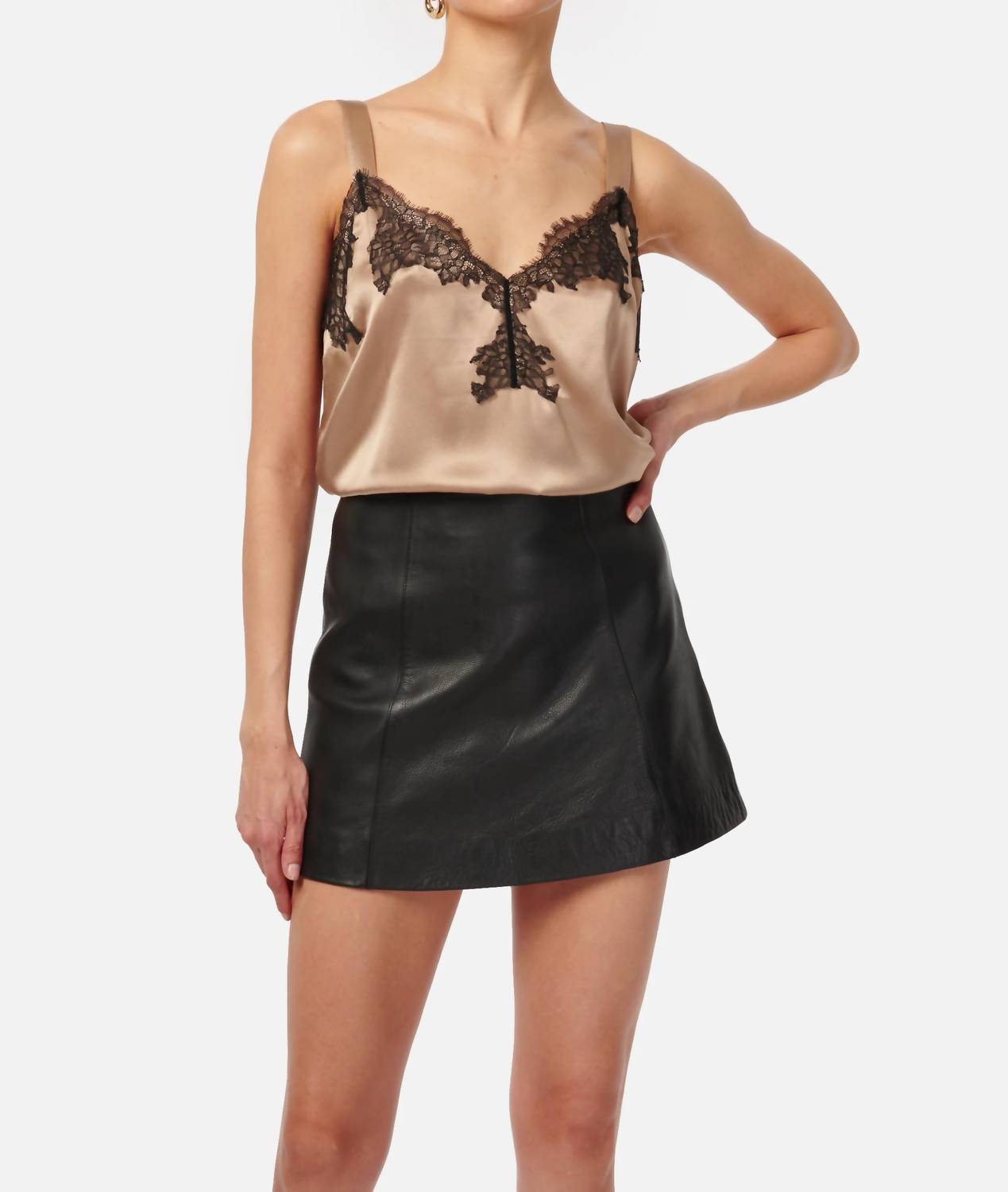 Tuck this cami into your favorite pair of jeans for a casual yet polished look. Introducing the Beatrice Camisole by Cami NYC, a sophisticated addition to your wardrobe in an elegant champagne hue. This luxurious camisole is crafted from 100% silk and features delicate spaghetti straps and a stylish V-neckline, enhanced with black contrast applied lace for a refined touch. Its relaxed fit with side slits ensures ease of movement, while adjustable straps offer a customized fit. Imported and unlined, this piece is easy to care for with dry clean only instructions, making it a timeless choice for any occasion.