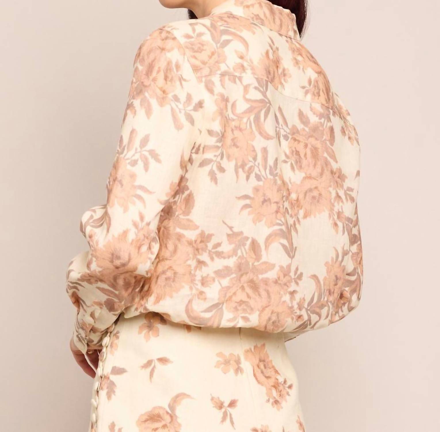 Perfectly tailored and soft to the touch. Elegant choice for any holiday party. Women's button-down shirt boasts long sleeves with elongated cuffs, a center front placket with button closure, and a classic collar for a timeless look. Made from 100% linen. Features an allover floral print. Crafted in China, offering both style and quality. Boho-chic piece demands minimal care with either dry cleaning or hand washing cold.
