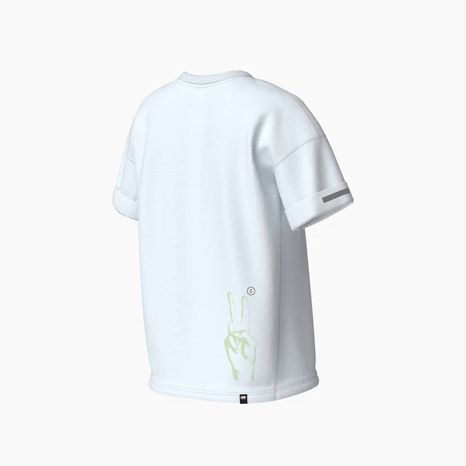 The Ciele Athletics WNSBTShirt - Peace Please in Ironlight is perfect for summer workout sessions, offering both style and performance with a graphic design and athleisure trend inspiration. This short sleeve tee is crafted from a 60% recycled cotton, 40% recycled polyester blend, making it an eco-friendly choice for fitness enthusiasts. Designed with a crewneck and pull-on closure, it includes quick-drying and moisture-wicking capabilities, along with flatlock stitching for added comfort. For care, machine wash and lay flat to dry to maintain its quality.