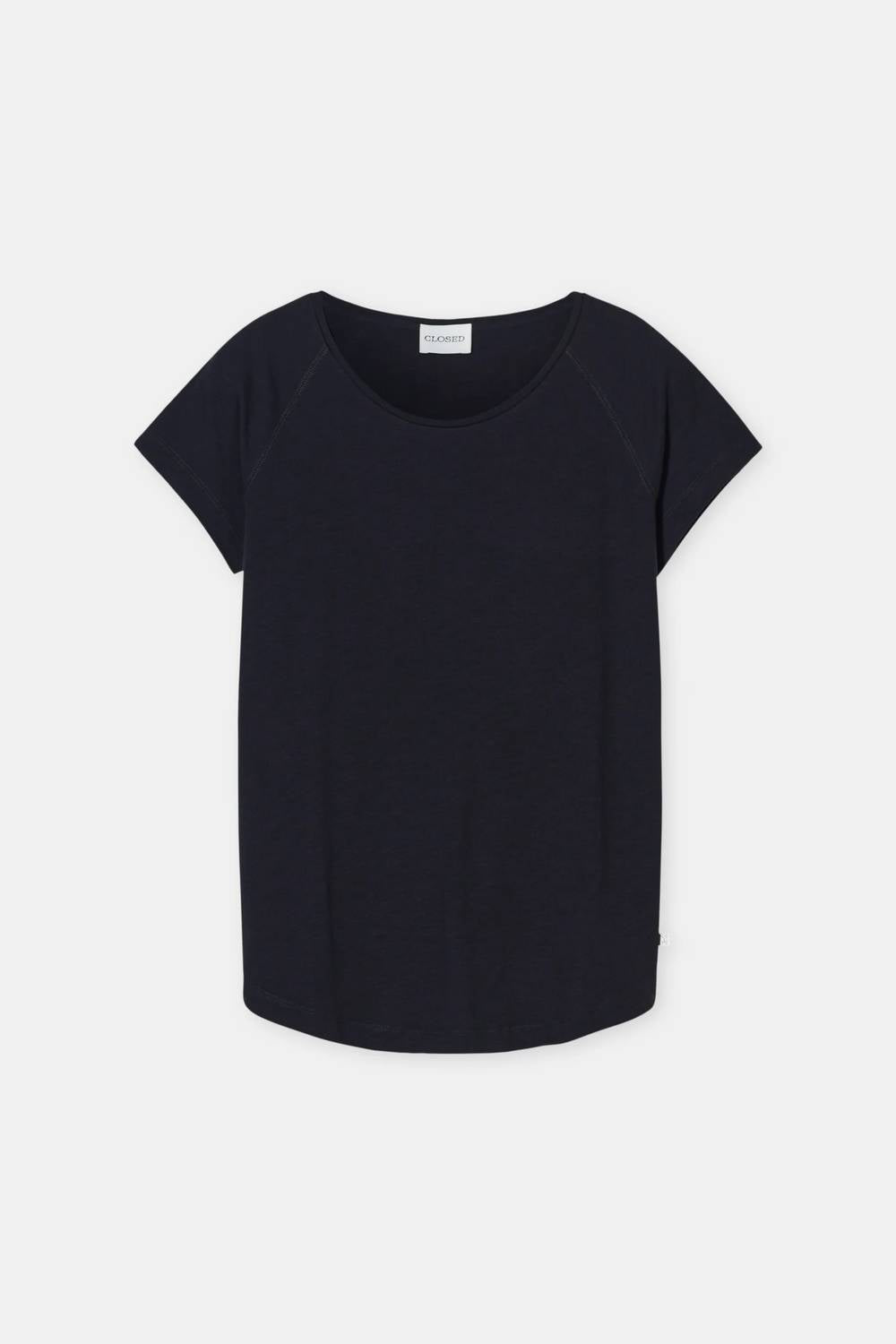 This classic, short sleeve tee will be your go-to staple this season and beyond. Discover the Raglan Cotton T-shirt by CLOSED, crafted for comfort and style in classic black. This women's tee features short raglan sleeves, a crewneck, and a regular fit with a total length of 26 inches. It is composed of 100% pure cotton with a soft slub jersey texture, offering a casual yet refined look. Designed and made in Portugal, this pull-on tee is machine washable for easy care.