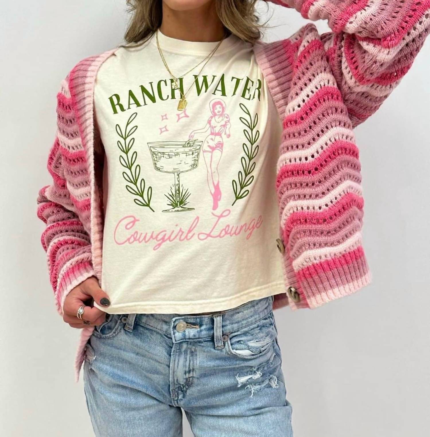 The perfect crop top for those warmer weather days. Introducing the Ranch Water Boxy Crop Tee by Comfort Colors, a chic piece ideal for your summer streetwear wardrobe. Made from soft cotton, this women's tee features a graphic print in the vibrant Pink Cowgirl color. It has a comfortable crewneck and short sleeves, ensuring easy pull-on wear. Perfect for a holiday party this Thanksgiving, this top combines style and comfort effortlessly.