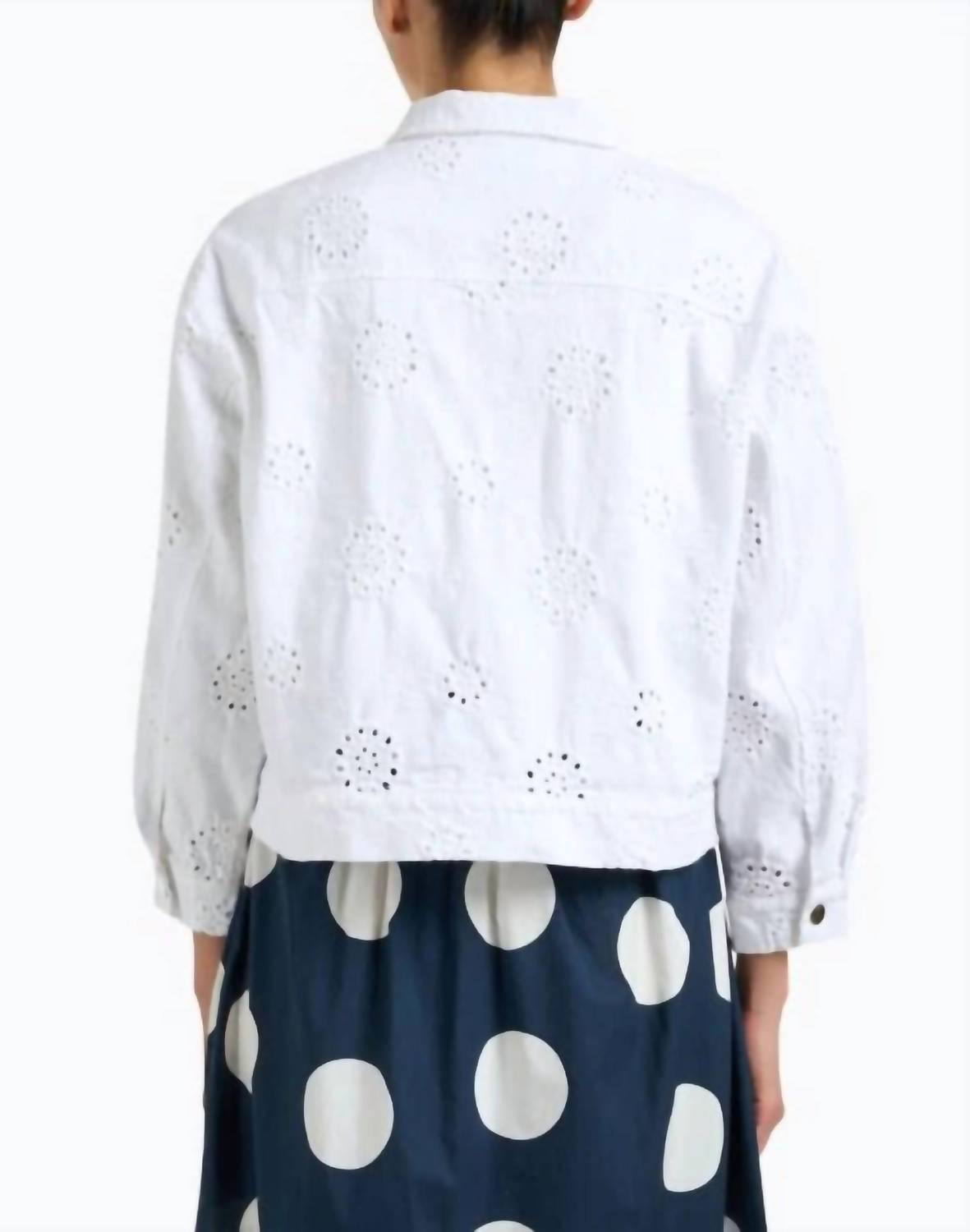 This button down shirt is comfortable yet polished. Experience the charm of Elliott Lauren's Button Front Jacket With Eyelet, an enchanting wardrobe addition perfect for the summer season. This long-sleeve jacket, crafted from 100% cotton, features a textured eyelet design in a refreshing light blue hue. Complete with a collar neckline and practical pockets, it offers a stylish button closure for ease. Care for this boho chic piece with a machine wash cold and line dry it to maintain its delicate texture.