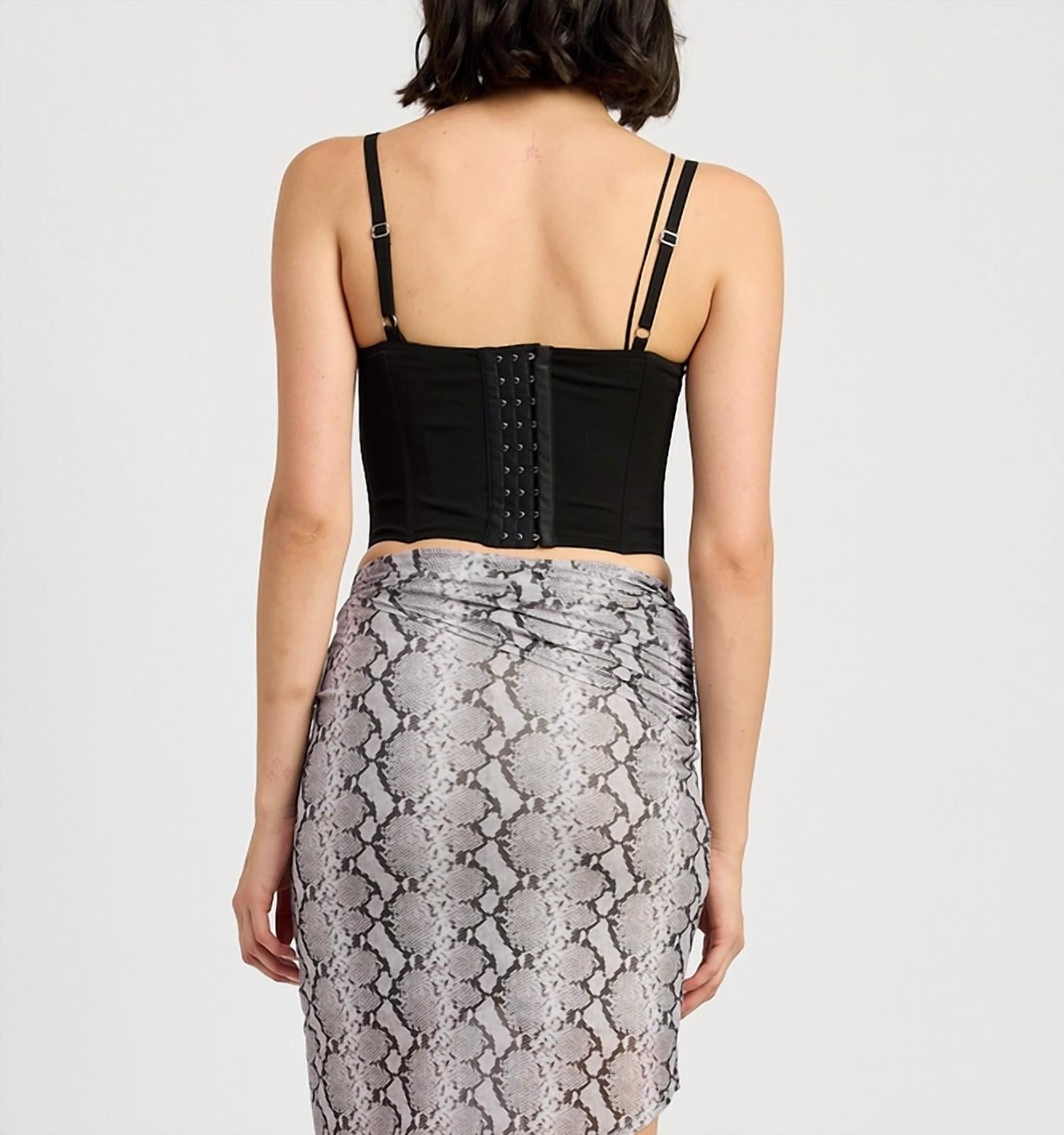 Introducing the Peekaboo Lace Corset Top by Emory Park, a stunning addition to any wardrobe that exudes chic elegance. This black top features delicate lace detailing and a sweetheart neckline, complete with spaghetti straps for a minimalist, yet alluring look. Closure: Hook and eye closure ensures a flattering fit while enhancing your natural curves. Care instructions: Hand wash. Ideal for a dinner party, this piece effortlessly pairs with various ensembles for versatile glam.