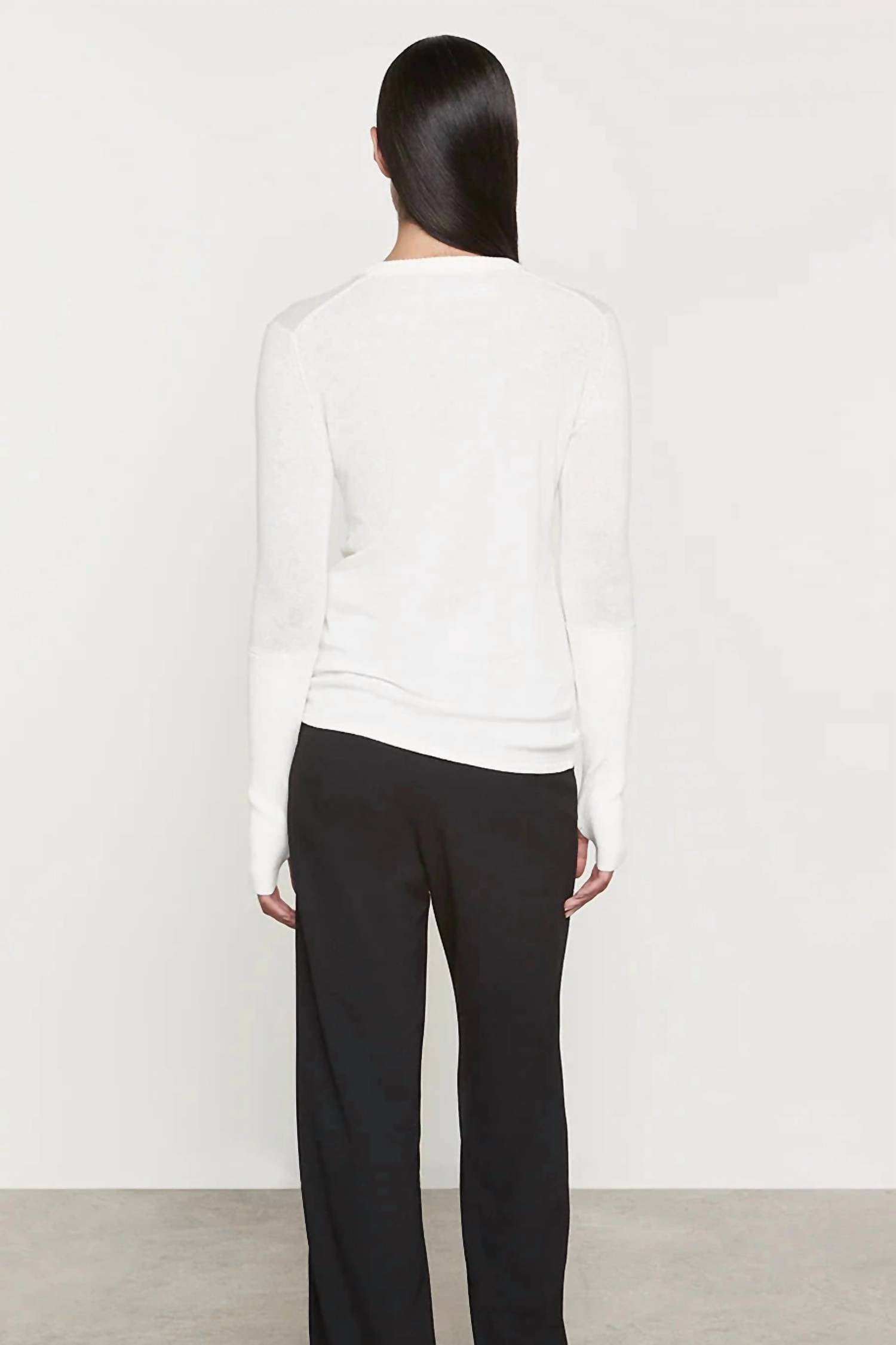 The perfect long sleeve tee that goes with just about anything. Embrace understated elegance with the Fine Cashmere V-neck Top by Enza Costa, tailored for a minimalist look in classic black. This long sleeve top is crafted from a luxurious blend of soft cashmere and premium cotton, featuring a classic V-neckline and ribbed cuffs with thumbholes for a modern touch. Emphasizing sophistication, it offers a solid pattern in a streamlined silhouette perfect for Thanksgiving and dinner parties. Made with a pull-on style for easy wear.