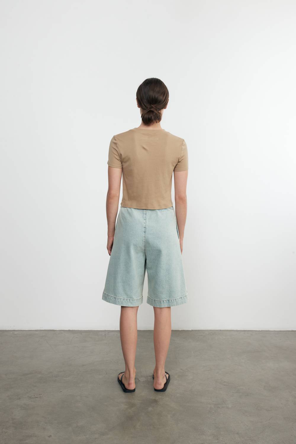 The perfect crop top for those warmer weather days. An ultra soft classic crew neck tee crafted from 100% Supima cotton, featuring a waist skimming cropped length and perfectly loose fit.