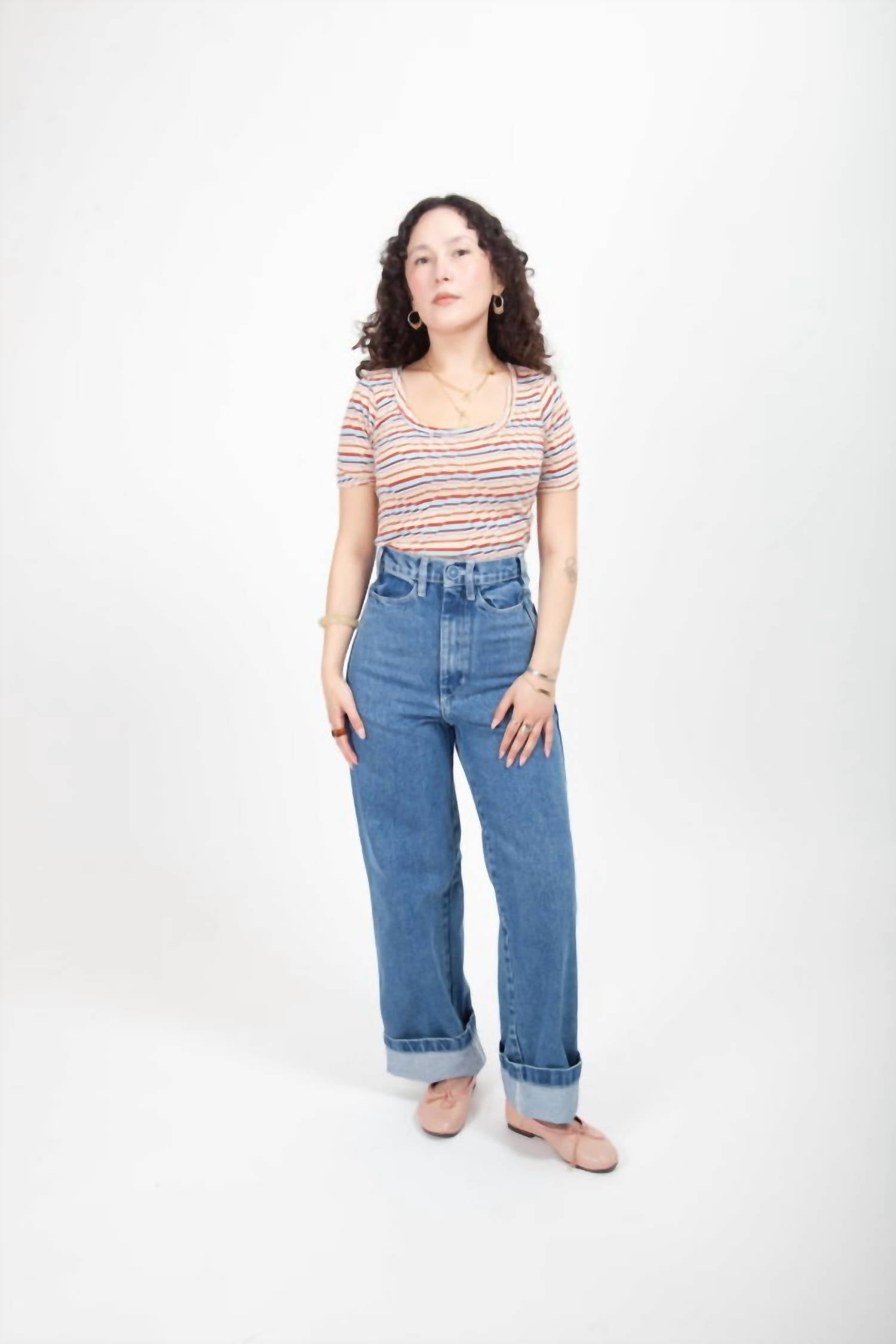 The Women's Darcy Top by Gravel & Gold is a playful addition to your wardrobe, featuring short sleeves and a flattering scoop neckline. Crafted with care, this Ripple Stripe tee is perfect for spring and vacation occasions, embodying a Boho Chic vibe. Designed with a convenient pull-on closure, it's a versatile piece made in San Francisco, California by skilled workers. Effortlessly pair this top with any of your favorite denim styles for a charming look.