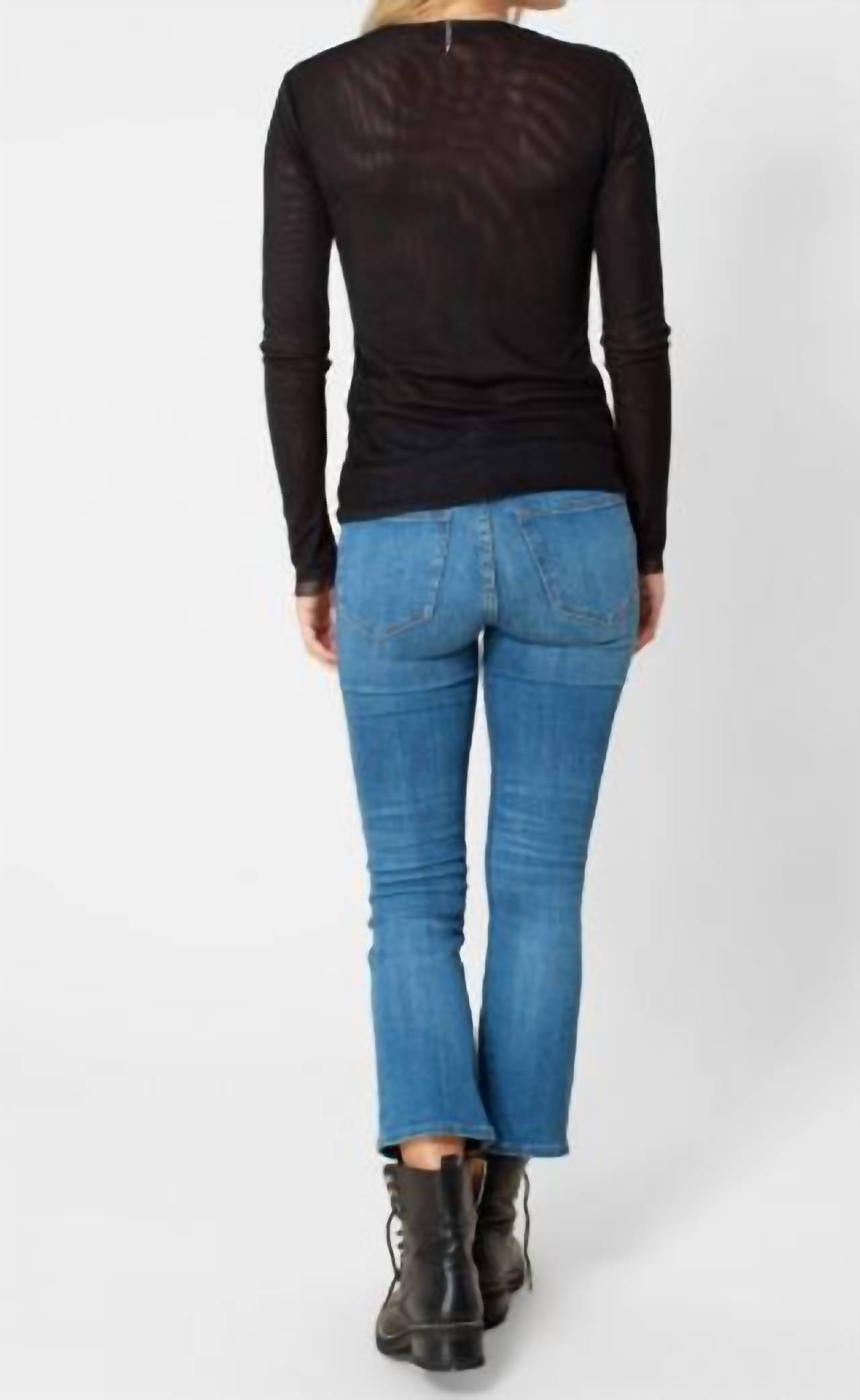 Elevate your wardrobe with the Marissa Long Sleeve Top by HALE BOB, a seamless blend of style and comfort. This women's top features long slim sleeves crafted from stretch tulle mesh, offering a textured yet elegant look. The pull-on design and crewneck make it easy to wear alone or layer under a jacket. Perfect for summer travels, this versatile black tee is a minimalist's dream.