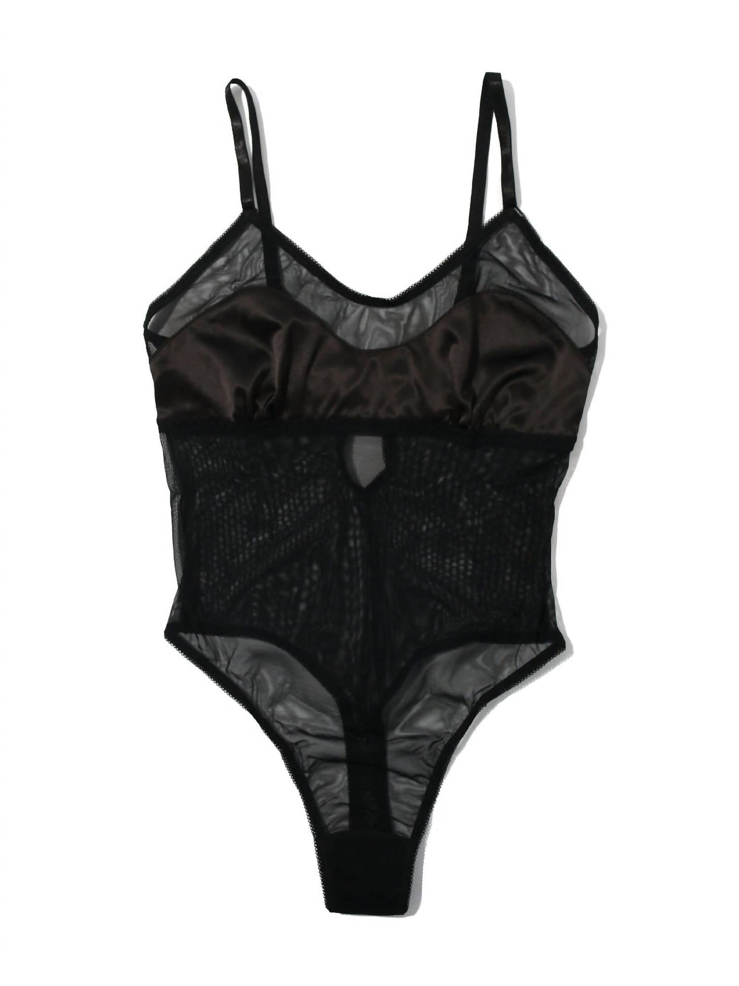 Pair this number with your favorite high-waisted jeans. Embrace your daring side with the Dark & Dangerous Bodysuit by HANKY PANKY, a glamorous addition to your wardrobe. This sleeveless bodysuit features a luxurious stretch satin and mesh construction, with a revealing thong back that artfully teases while maintaining elegance. Composition: Satin - 95% Polyester, 5% Spandex; Mesh - 93% Polyamide, 7% Spandex; Crotch Lining - 100% Cotton. Closure: Hook and eye closure at the center back. Care: Hand wash in cool water with mild detergent, then line dry or hang to dry.