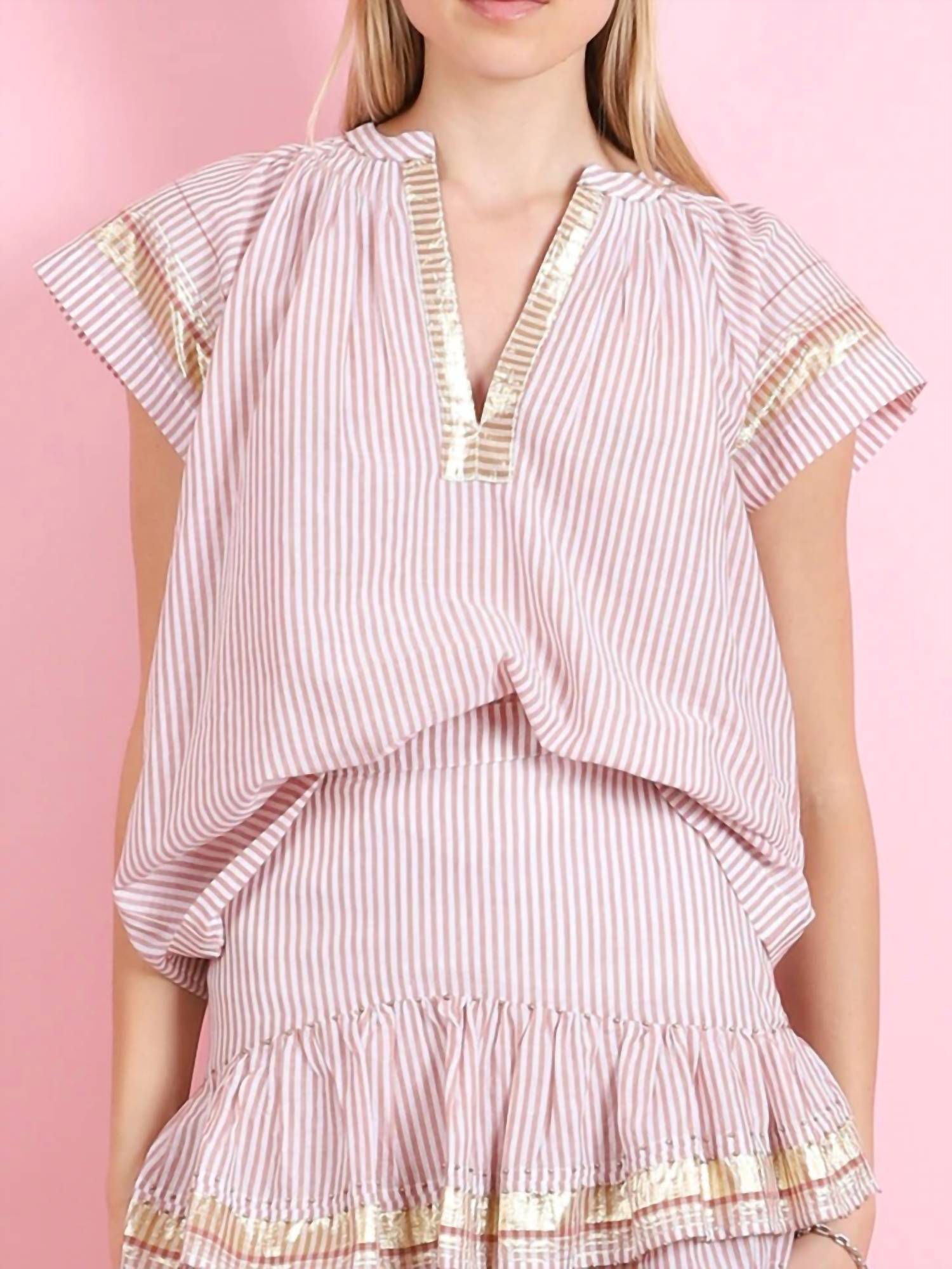 A timeless blouse that will never go out of style. Introducing the Echo Wide Sleeve Top by Ilio Nema, crafted in their signature Ithaki Stripe for a touch of laid-back elegance. This short sleeve blouse features a deep V-neckline and a relaxed, subtly cropped silhouette. Made from 100% breathable cotton, it offers an effortlessly chic staple for warm-weather styles. Closure: Pull-on. Perfect for vacation boho-chic looks, pair it with matching bottoms or your favorite denim.