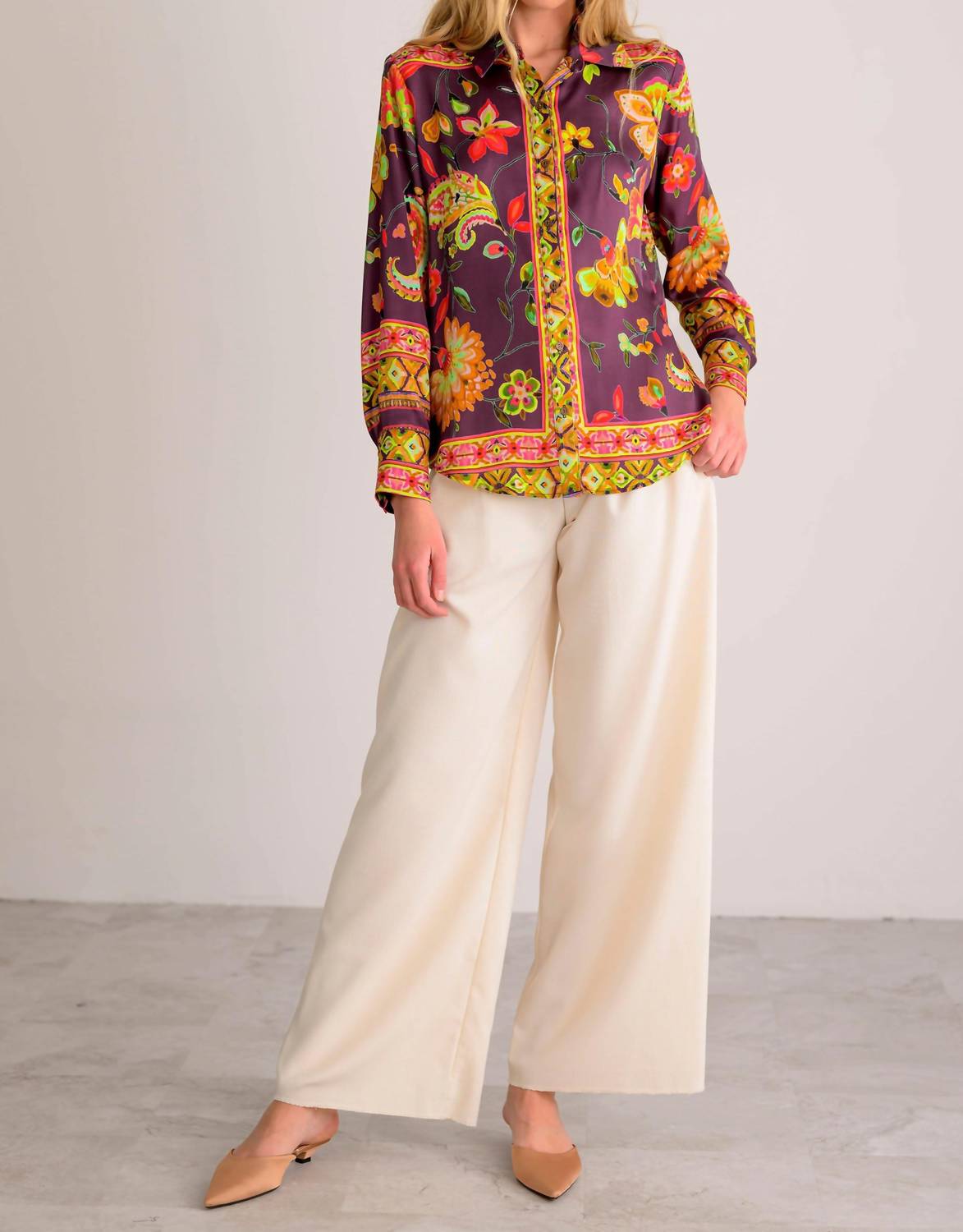 Introducing the Alivia Top by LAVENDER BROWN, a chic addition to any wardrobe with its long sleeves and tailored classic collar. Crafted from quality polyester, this blouse features a sophisticated floral and border print in a rich Brown Red hue. Designed for versatility, it seamlessly transitions from casual outings to formal occasions. Closure is achieved with a button closure, and it is crafted with careful attention to detail, ensuring both comfort and style.