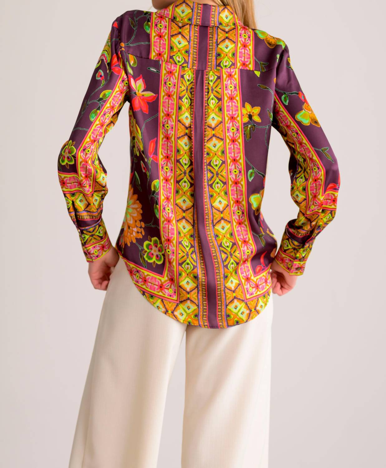 A versatile blouse that works from desk to dinner! Introducing the Alivia Top by LAVENDER BROWN, a chic addition to any wardrobe with its long sleeves and tailored classic collar. Crafted from quality polyester, this blouse features a sophisticated floral and border print in a rich Brown Red hue. Designed for versatility, it seamlessly transitions from casual outings to formal occasions. Closure is achieved with a button closure, and it is crafted with careful attention to detail, ensuring both comfort and style.