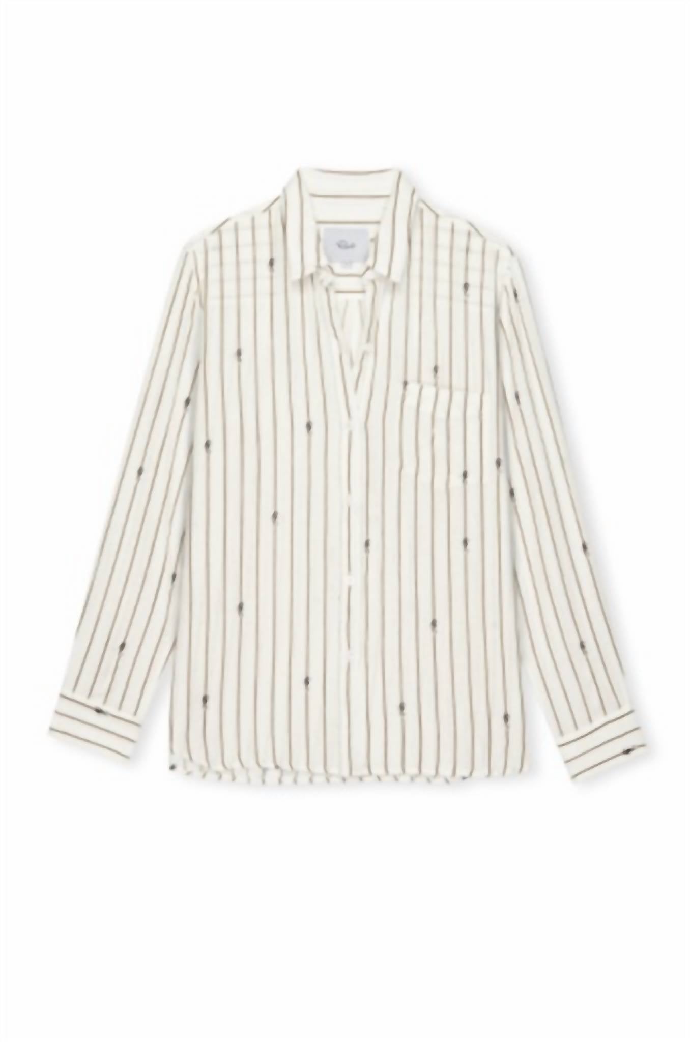 Discover the Charli Linen Blend Top by Rails, a perfect piece for spring festivities and holiday gatherings. It features long sleeves with button cuffs, a chic spread collar, and a practical chest patch pocket. Composed of 55% linen and 45% Lenzing™ EcoVero™ viscose, this blouse offers a sustainably stylish choice with a length of 26.5 inches in size Medium. Closure: Button closure. Care: Hand wash, line dry. This piece is imported, boasting a minimalist striped seahorses pattern for a unique look.