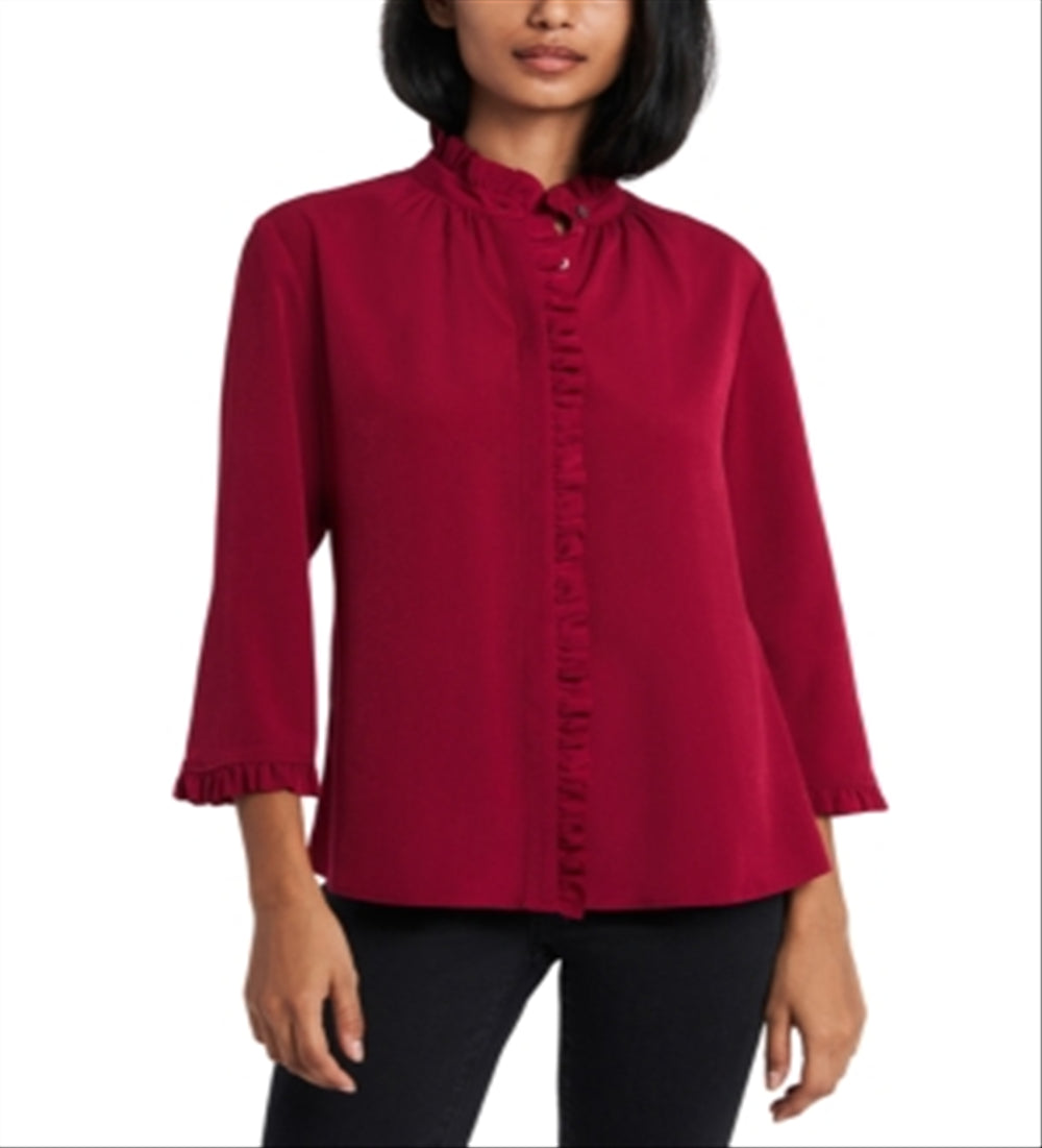 Discover the elegance and charm of the Riley & Rae Penny Ruffled-Trim Blouse, a standout piece in women's clothing that perfectly blends sophistication with a touch of whimsy.
