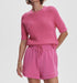 Introducing the Lucy Knit Top by VARLEY, a chic addition in Ibis Rose designed to elevate any outfit. Featuring short sleeves and composed of a 50% Viscose, 30% Nylon, and 20% Polyester blend, its textured waffle knit design offers both style and comfort. The top boasts a classic crewneck and is pull-on for your convenience. Care for this versatile piece by machine washing cool and laying it flat to dry. The studio model is 177 cm tall with an 81 cm bust, 61 cm waist, 86 cm hips, and wears a size small, with a front length of 58 cm.