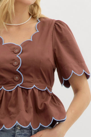 English Factory - Tally Scallop Trim Short Sleeve Shirt