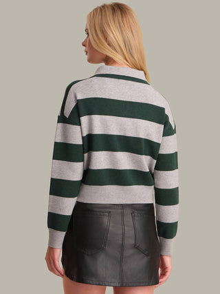 ANNE KLEIN Womens Black Striped Long Sleeve Collared Top Size: XS