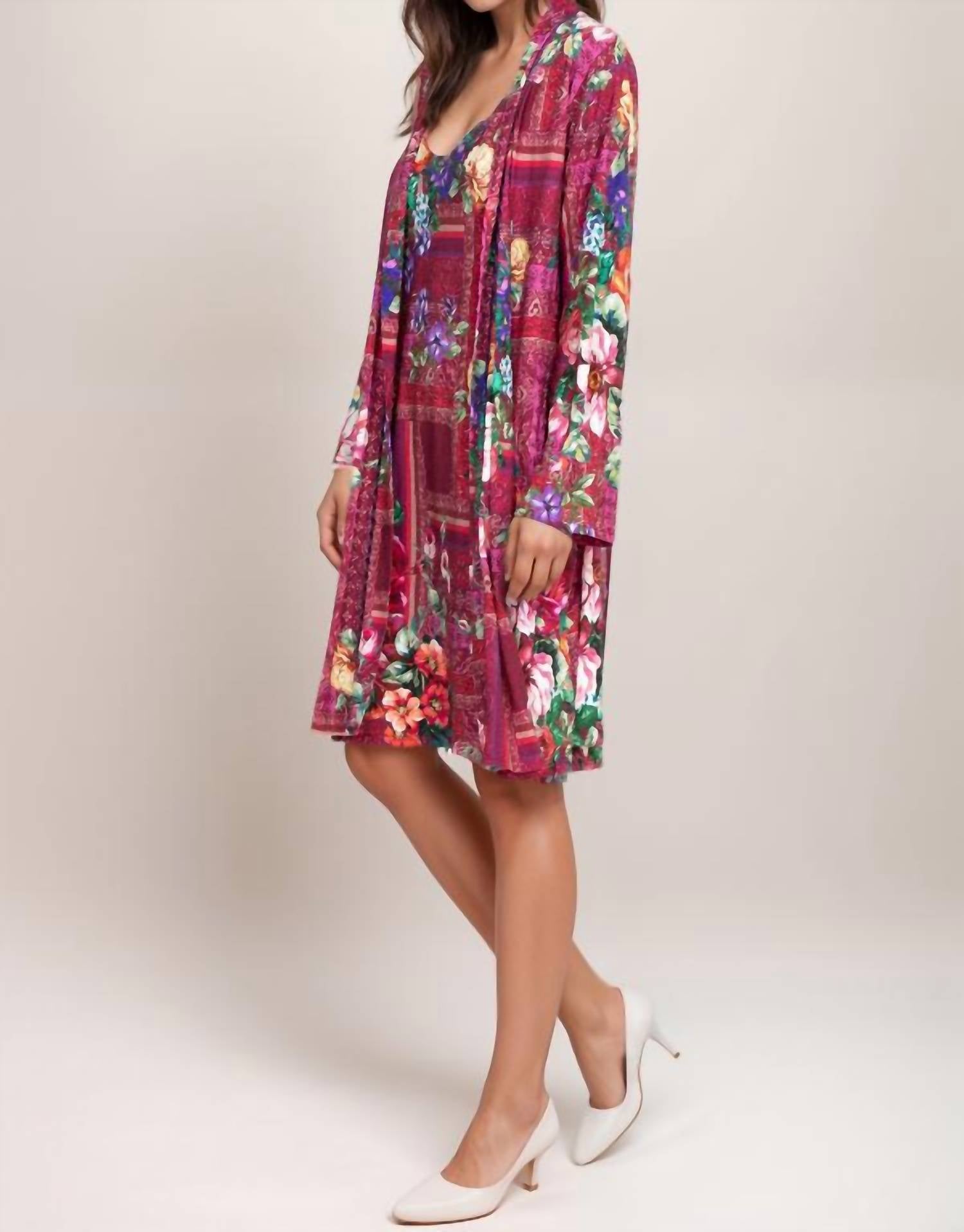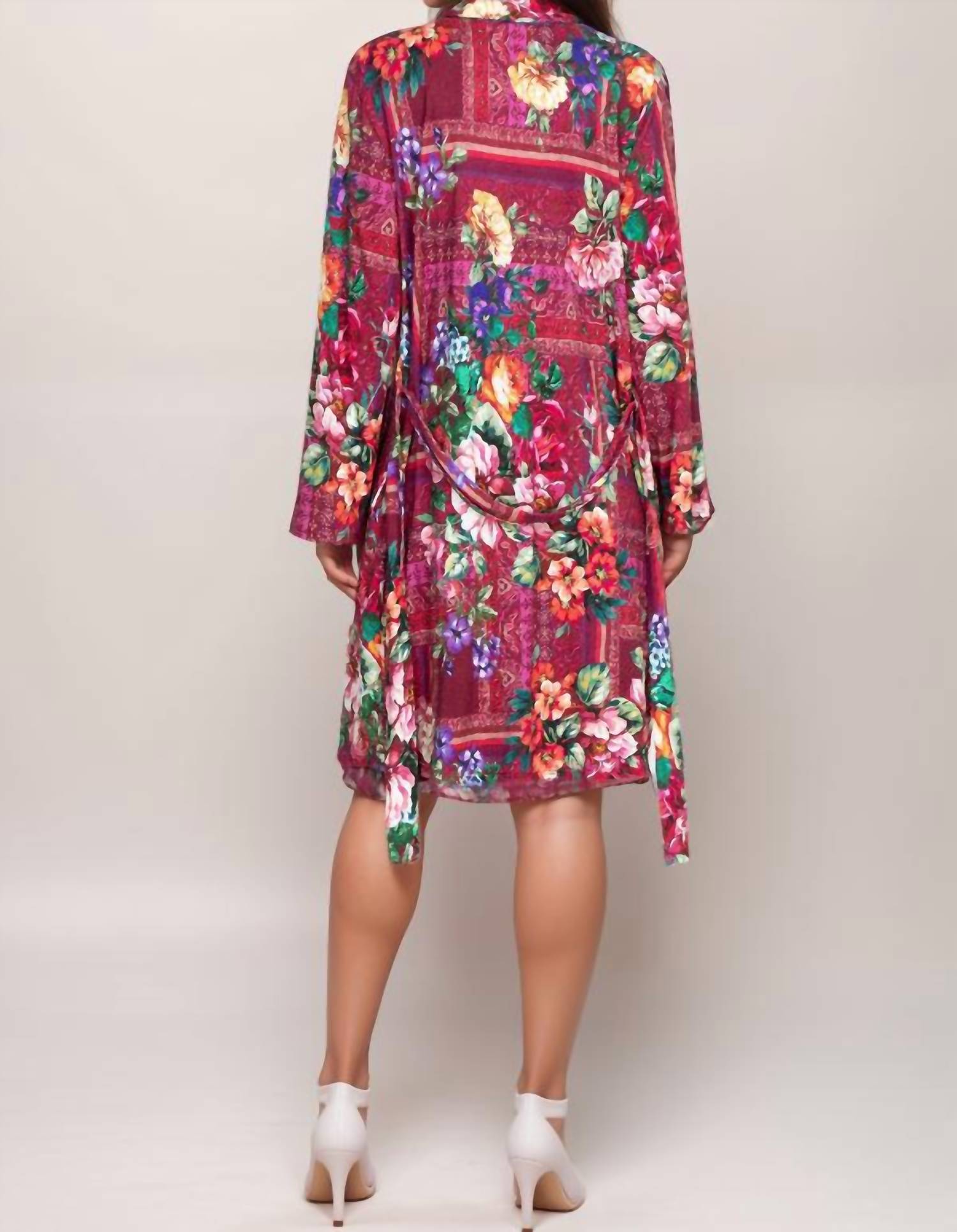 Eleve o seu estilo de vida com o robe de dormir Bethia da Johnny Was, uma peça boho-chic que adiciona um toque de luxo ao seu conjunto de dormir. Este robe apresenta mangas compridas e um design multicolorido com um toque vintage. Composição: 50% algodão, 50% modal. Fecho: faixa com amarração na cintura. Com dois bolsos laterais, é prático e estiloso, perfeito para vestir enquanto relaxa à noite.