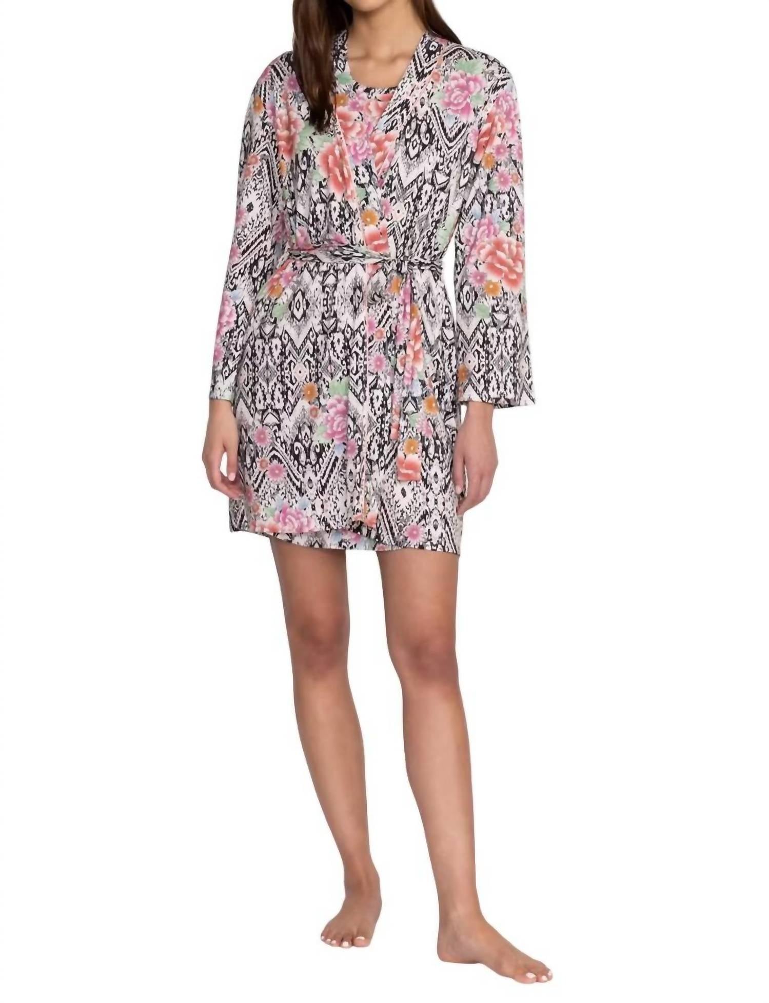 A peça perfeita para relaxar, dormir e preparar o café da manhã. Apresentamos o Robe Johnny Was Jonesy no deslumbrante Azzie Flower Neo, uma adição elegante e descomplicada à sua coleção de pijamas. Este robe possui mangas compridas e um confortável decote em V, confeccionado em uma luxuosa mistura de algodão 50% algodão e 50% modal. Perfeito para mulheres que apreciam o artesanato fino e o conforto, apresenta um design estampado leve e respirável. As instruções de cuidado incluem lavagem à máquina com facilidade e secagem no varal para uma manutenção ideal. Altura da modelo: 1,73 m.