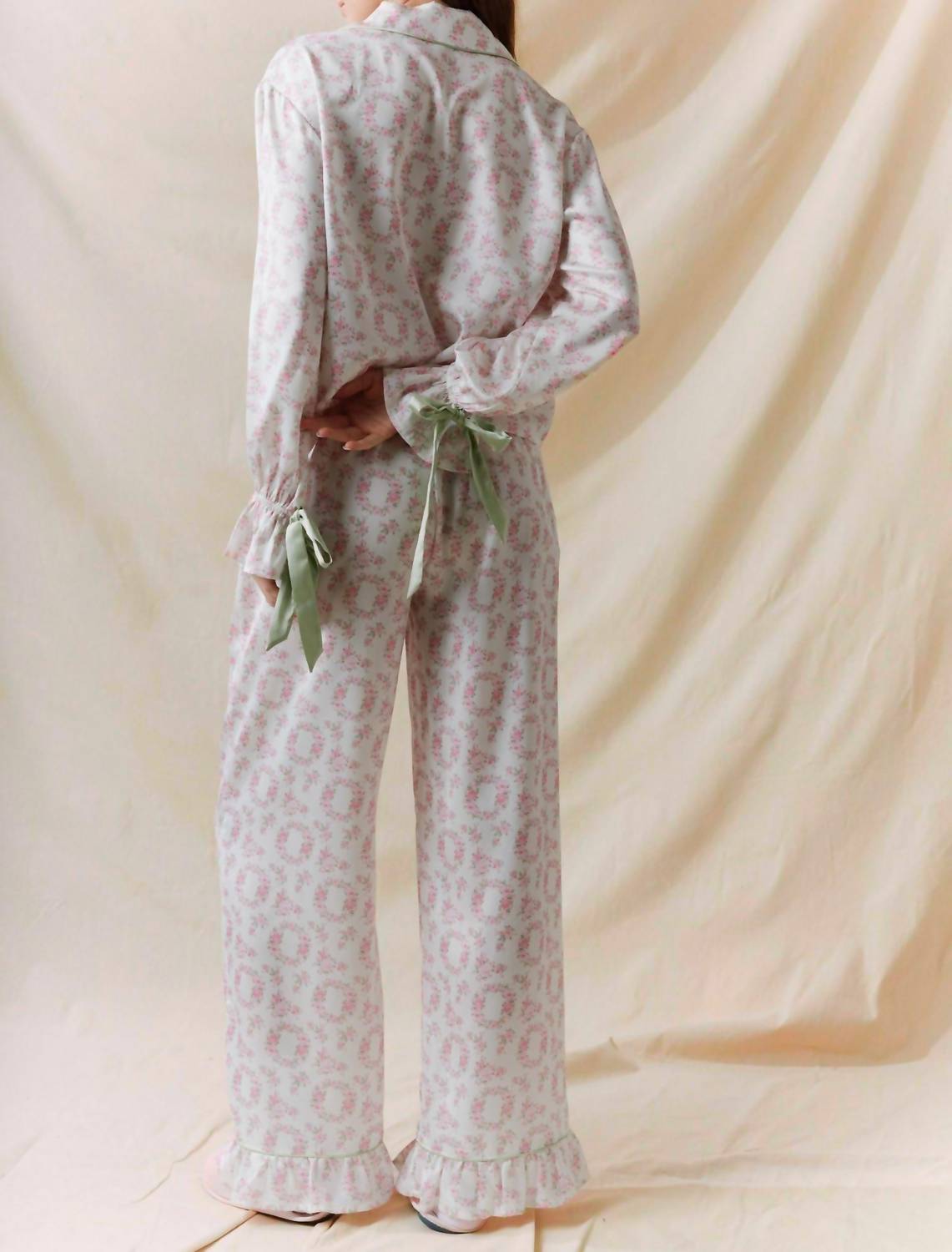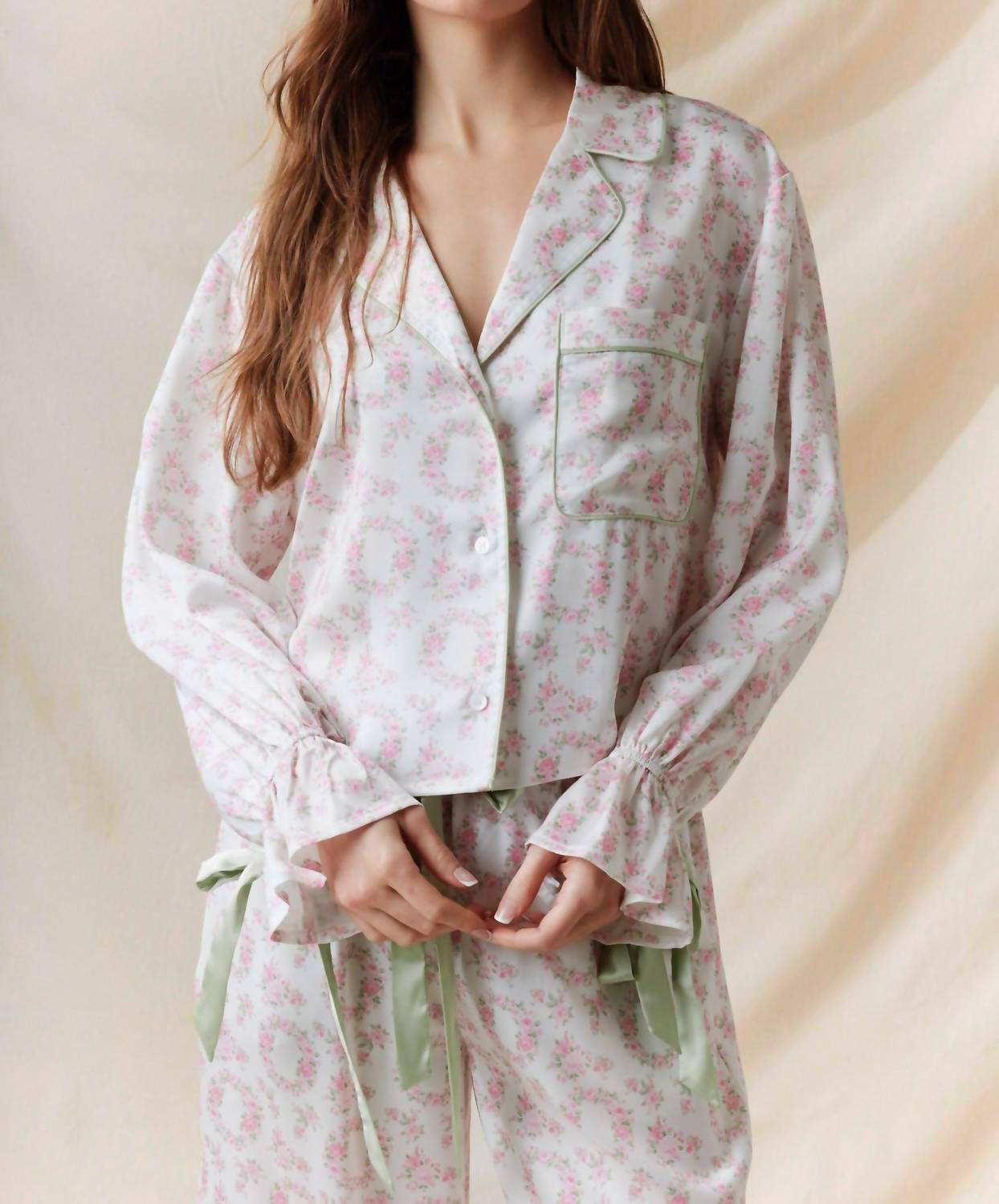 Works well with naps, zoom calls and binging your favorite series. Embrace quiet luxury with the Blossom Bash Silky Pajama by Peach Love California, featuring a flattering collar and elegant long sleeves. These pajamas boast a charming pink floral pattern on smooth polyester, accented with sage green trim for a sophisticated touch. Perfect for vacations or as a thoughtful Christmas gift, these pajamas ensure restful, stylish slumber. Ideal for warm spring nights, they bring a playful elegance to any bedtime routine.