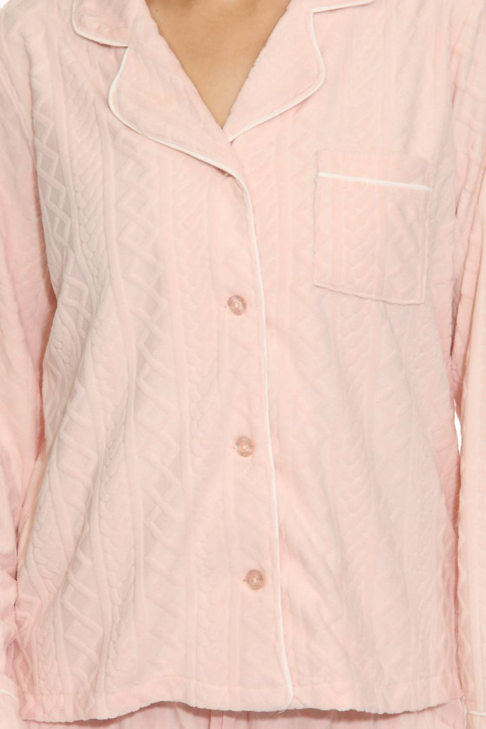 A peça perfeita para relaxar, dormir e preparar o café da manhã. Experimente o luxo aconchegante com o Pijama Feminino Very Terry Cable Crew da PJ Salvage, perfeito para relaxar com estilo. Este pijama possui mangas compridas e uma silhueta estruturada em malha chenille de poliéster ultramacia. Completo com gola entalhada clássica, fecho frontal por botões e um elegante bolso no peito esquerdo, este top em tom rosa sólido adiciona um toque elegante a qualquer coleção de roupas confortáveis. Perfeito para noites mais frias ou manhãs preguiçosas, esta peça importada foi projetada para manter você aquecido e confortável.
