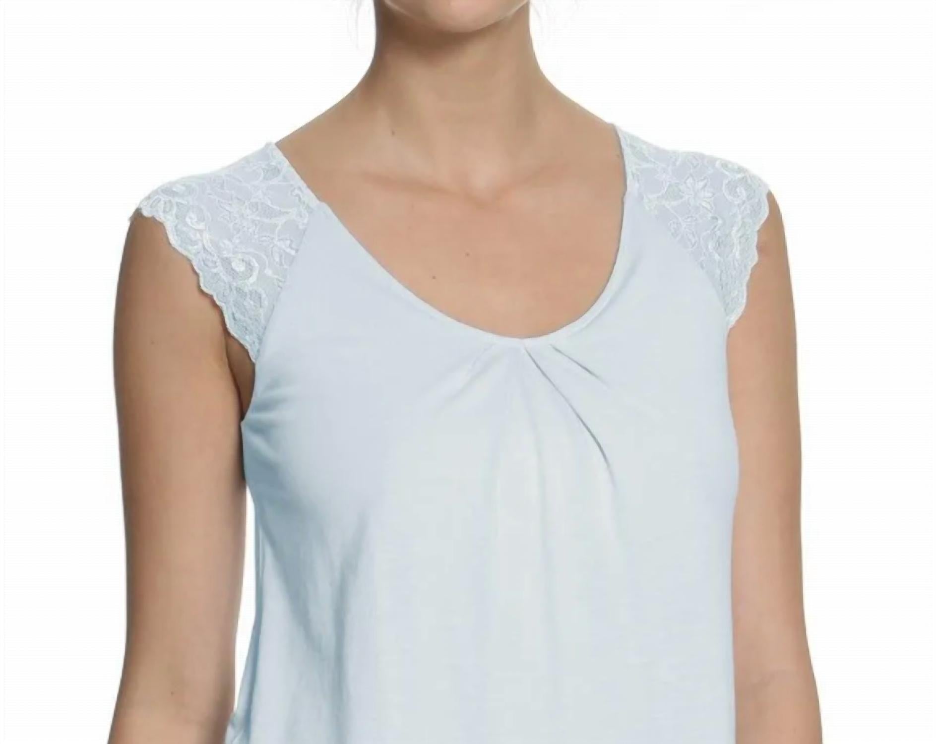 Combine com chinelos confortáveis para um pijama perfeito. Desfrute do conforto do Conjunto de Pijama Cropped de Manga Curta Amber da Twelve Eighty Eight, que oferece uma noite de sono luxuosa. Este conjunto azul perolado apresenta uma blusa de manga curta em renda com decote arredondado e sutiã embutido para suporte. Feito de uma mistura supermacia de 50% algodão Pima peruano e 50% modal, com comprimento de 58 cm na parte superior e cós elástico de 66 cm, cós de 25 cm e costura interna de 53 cm nas calças tamanho P. O cuidado é fácil: lave na máquina com água fria em um ciclo suave e seque na secadora em temperatura baixa.