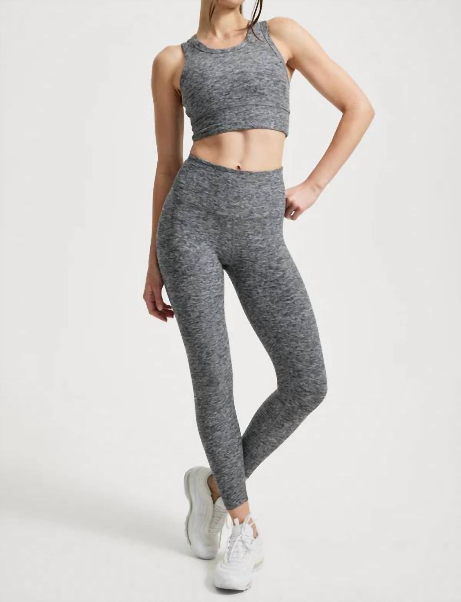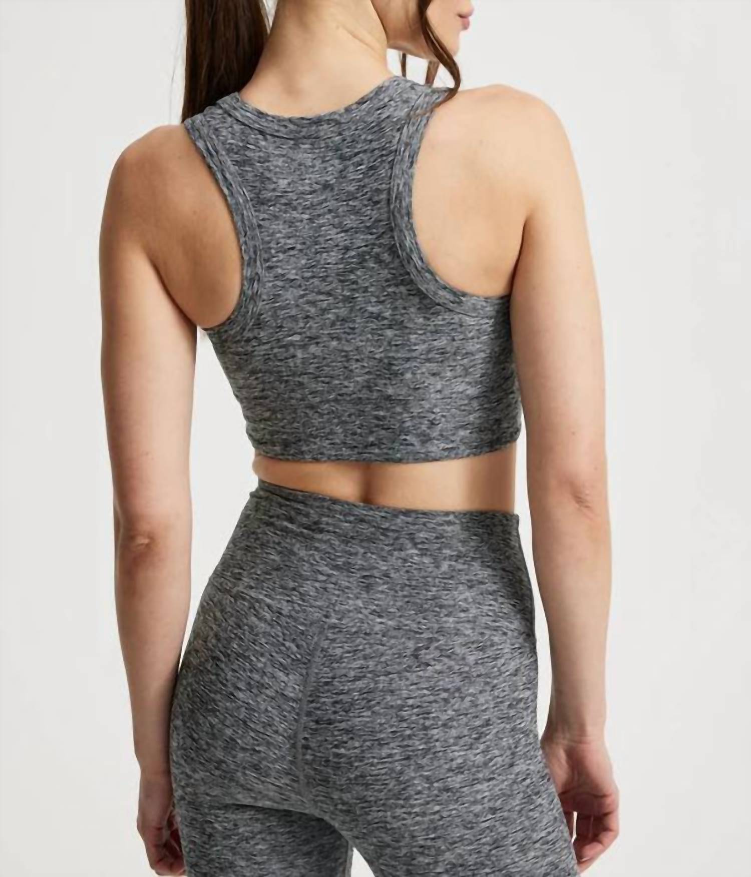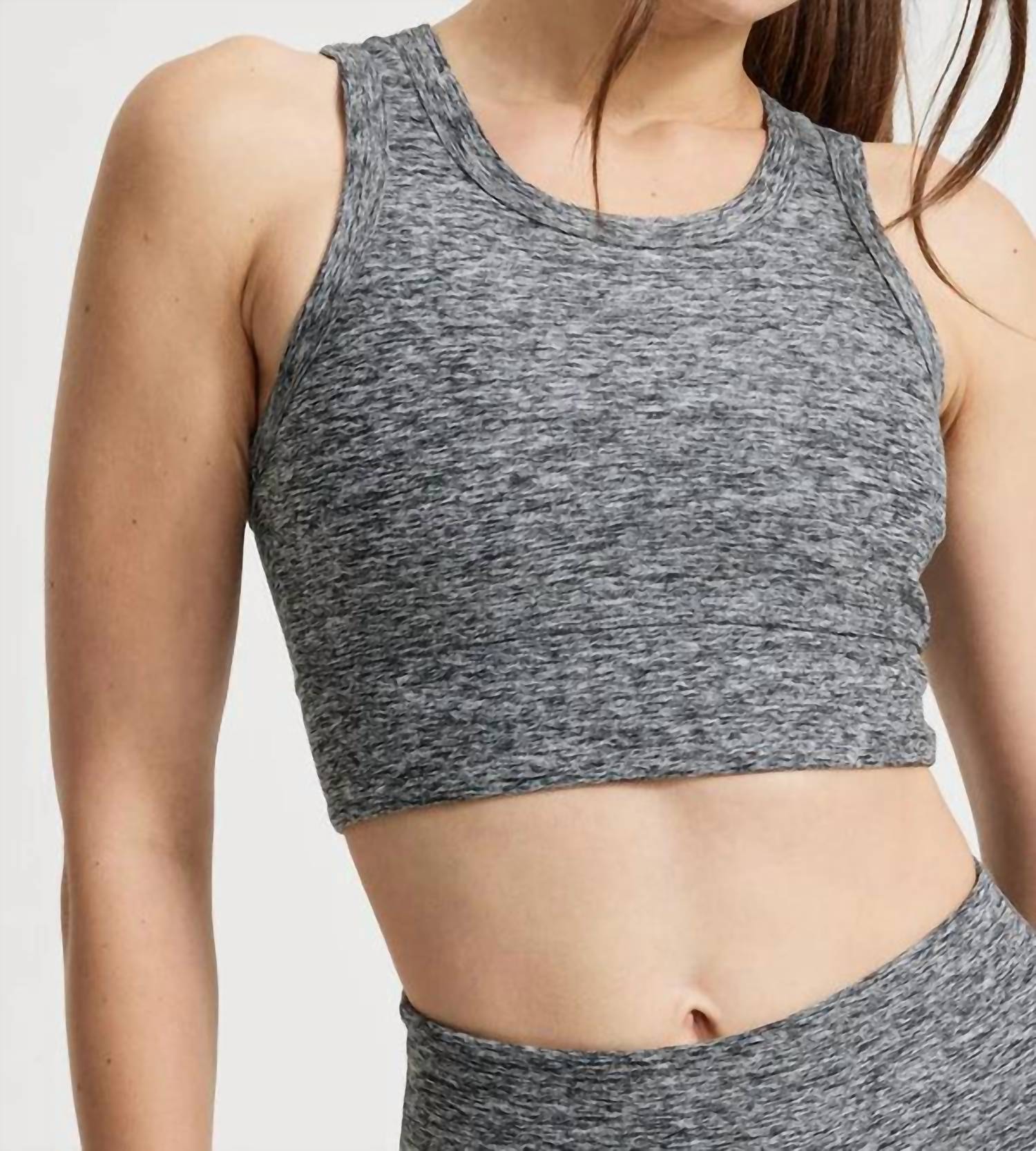 O sutiã esportivo mais confortável e com mais suporte que você terá. Um sutiã esportivo texturizado, projetado para conforto e estilo, em cinza mesclado. Com uma composição de 87% poliéster e 13% elastano, esta peça é orgulhosamente fabricada nos EUA e oferece um estilo pull-on para facilitar o uso. As instruções de cuidado incluem lavagem à máquina para fácil manutenção.