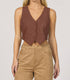 Embrace a minimalist look with the Drea Suede Vest by Dear John Denim, an essential addition to your wardrobe. This sleeveless piece in a rich Brownie shade is crafted from 90% Polyester and 10% Spandex faux suede, offering a sumptuous feel. It features a sleek snap closure for an effortlessly chic silhouette, ideal for any layered ensemble. Care: Hand wash and line dry.