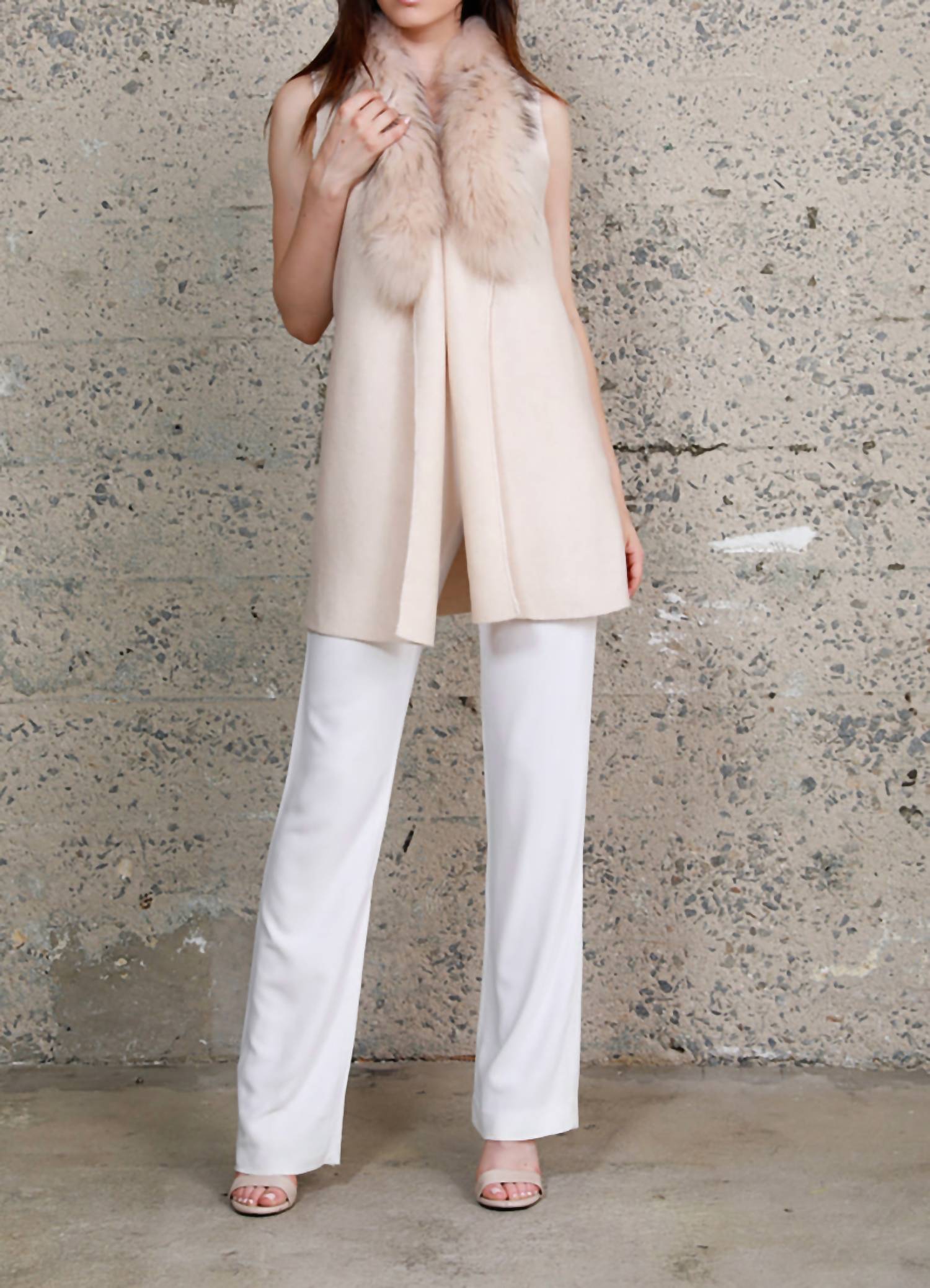 Dolce Cabo - Women's Cream Fur Collar Vest